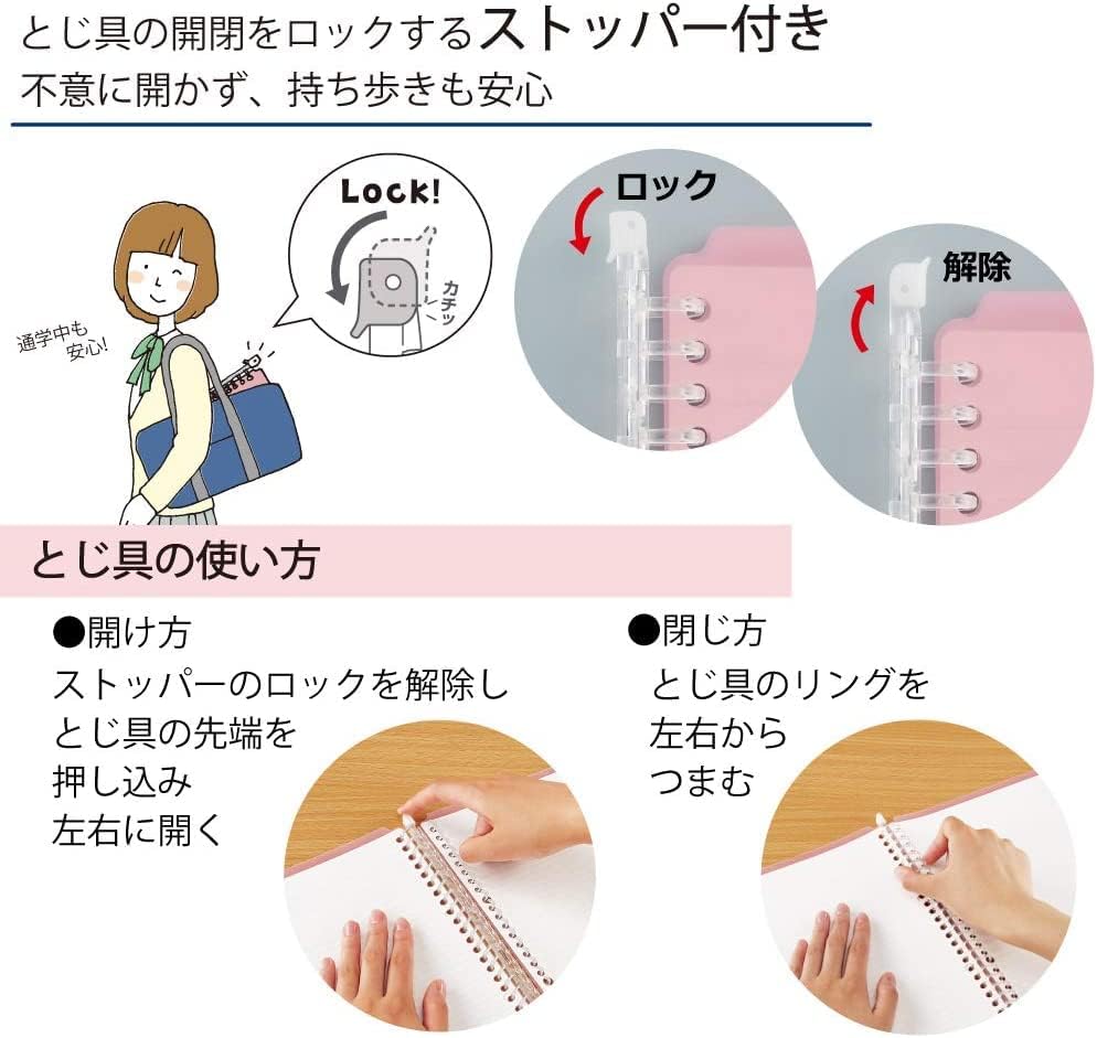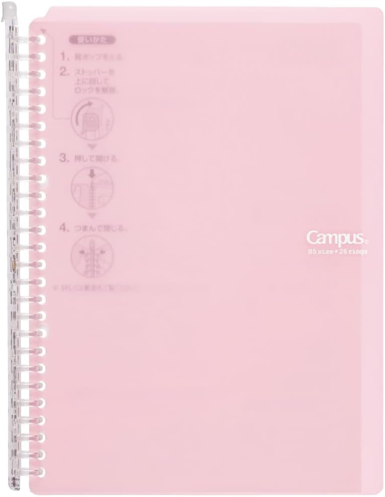 Kokuyo Campus Smart Ring Binder, B5 Light Pink Binder Notebook Up to 60 Sheets 26 Holes Slim Binder Folder with 10 Extra Campus Sarasara Loose-Leaf Paper for Work, Study and Journal, Japan Import