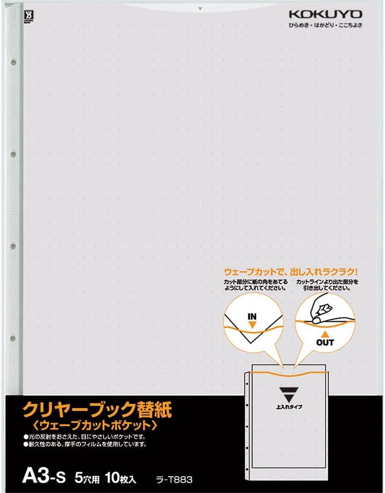 Kokuyo clear book wave cut Kawakami A3 10 sheets ash La -T883M