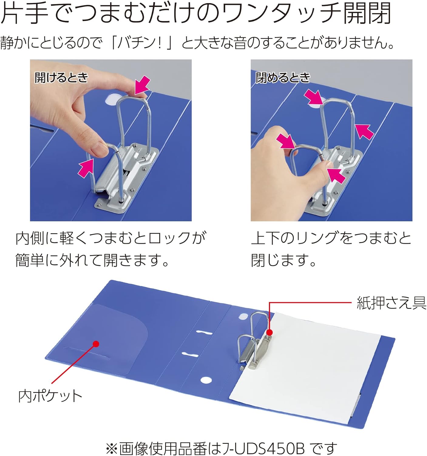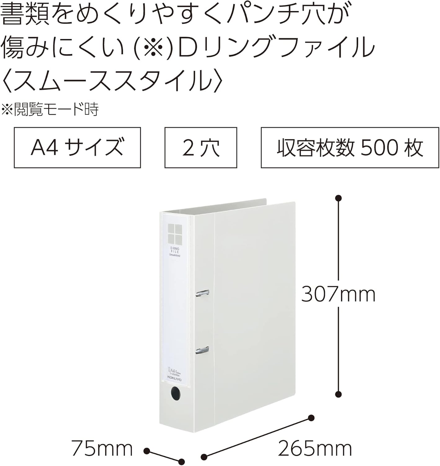 Kokuyo F-UDS450W D-Ring File, Smooth Style, A4, Holds 500 Sheets, Off-White