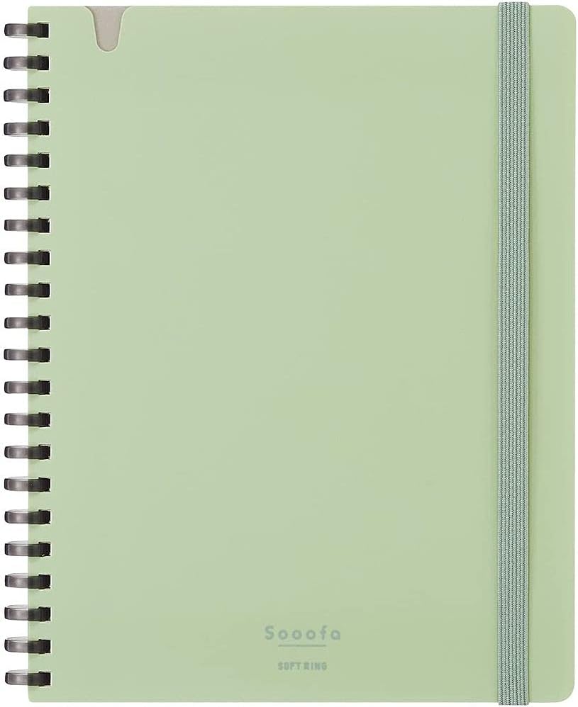 KOKUYO Graph Journal Notebook, Sooofa 7.2'' x 5.5'' Soft Ring Notebook for Women 4mm Grid Ruled, 80 Perforated Sheets, Green, B6 Notebook for Work Journals for Writing. Japan Import (SU-SV748S4-G)