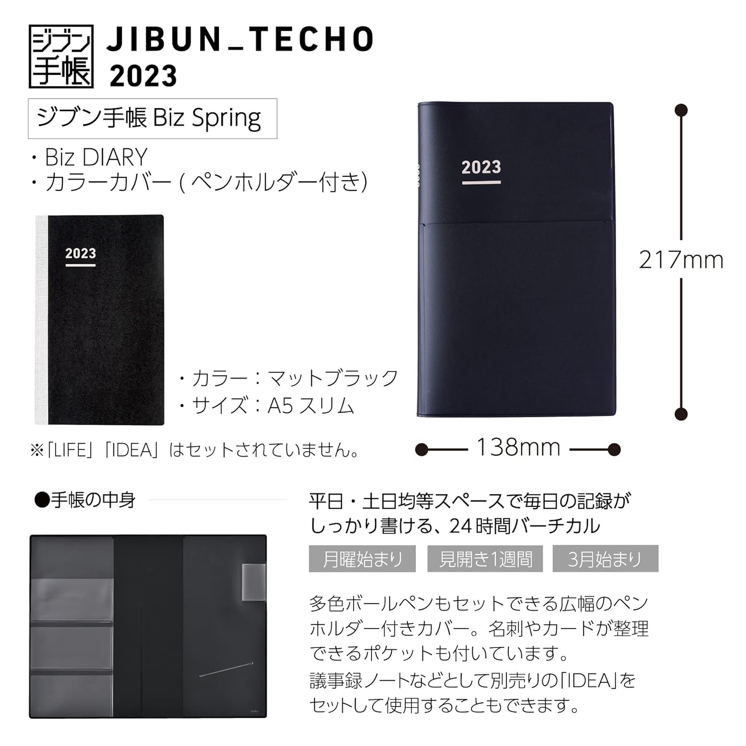 Kokuyo JB1D-234 Jibun Notebook, Biz Starts April 2023, Spring Notebook, A5, Matte Black