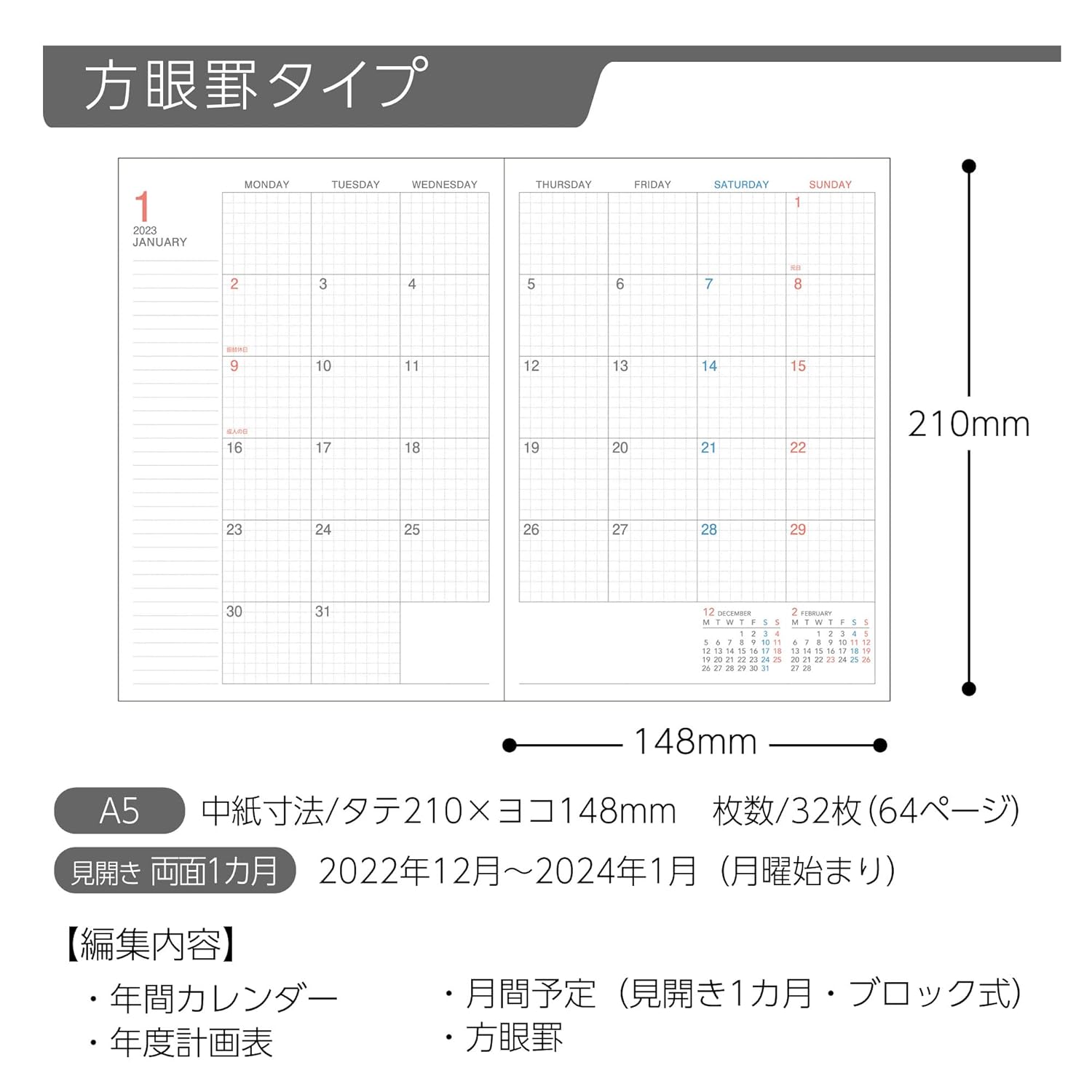 Kokuyo NE-CMSR-A5-23 Campus Diary Notebook, 2023, Monthly Notebook, A5, Grid Ruled, Red, Begins December 2022