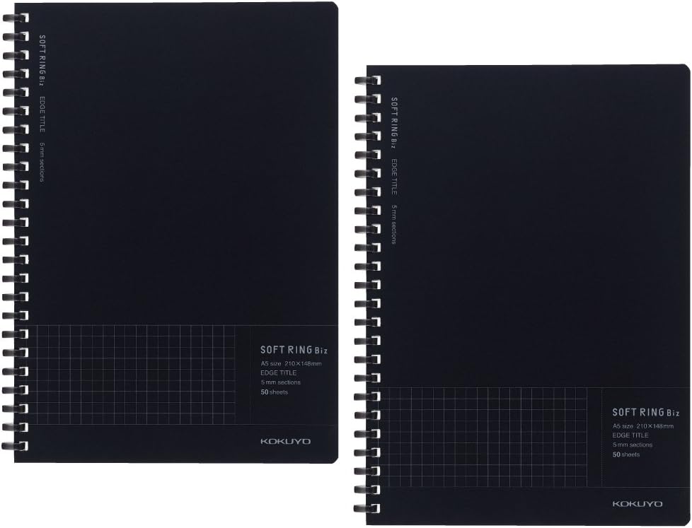 Kokuyo Notebook Soft Ring 50 Sheets A5 Set 2, Grid Ruled Scan Edge Title Black - SJ231S5-DX2
