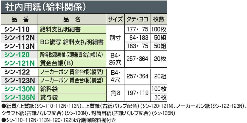 Kokuyo paper-house payroll B4 horizontal 4 hole 20 pairs thin-123N (japan import)