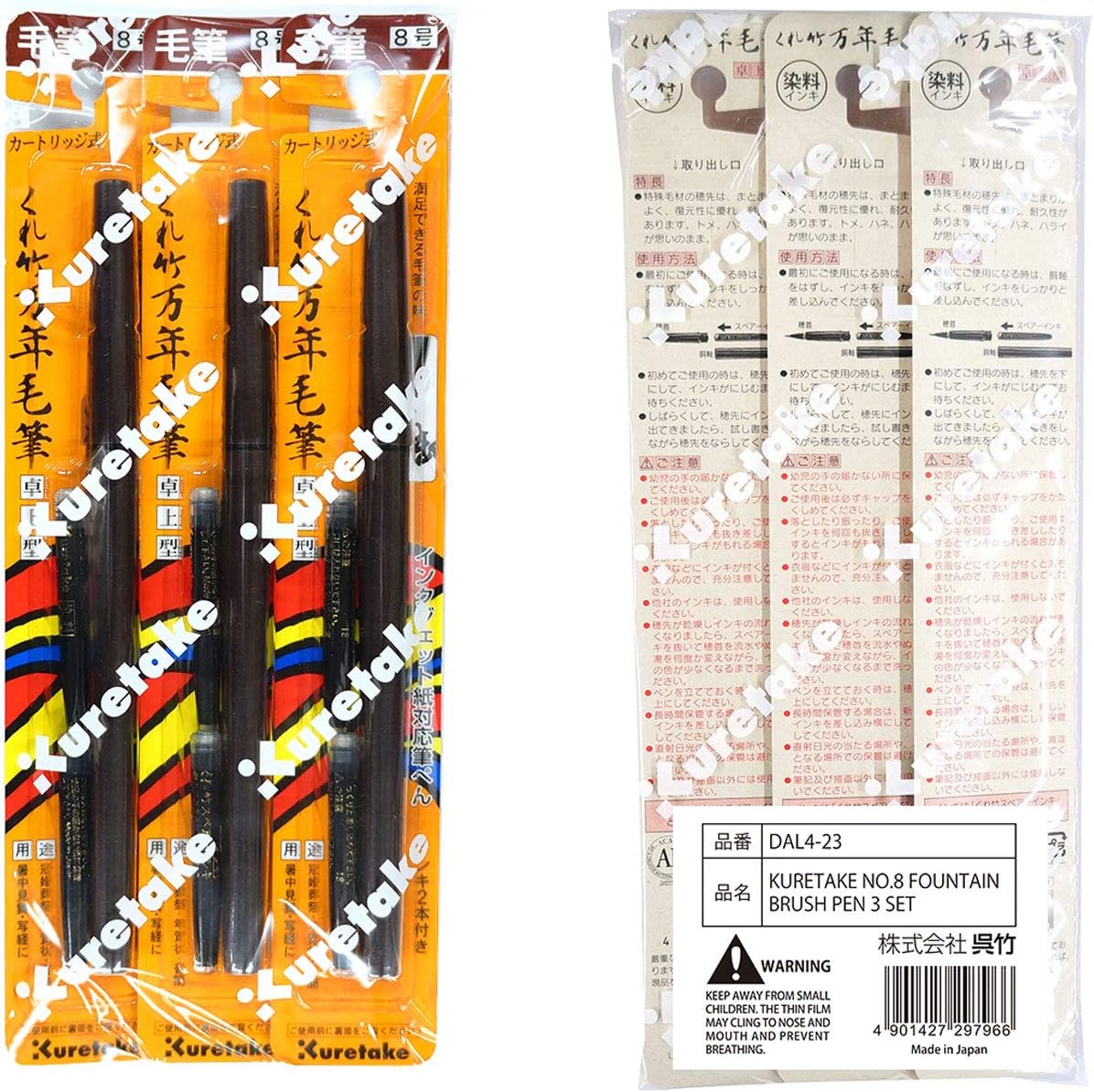 Kuretake No. 8 Fountain Brush Pen (DP150-8B) (3 pens Set)