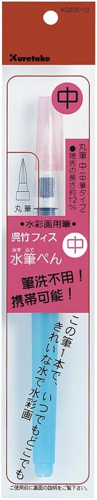 Kuretake PHYS Water brush pen Long, 12mm Medium tip,for Watercolor Paint, urban outdoor travel sketch, Professional, Artists, Crafters, Made in Japan
