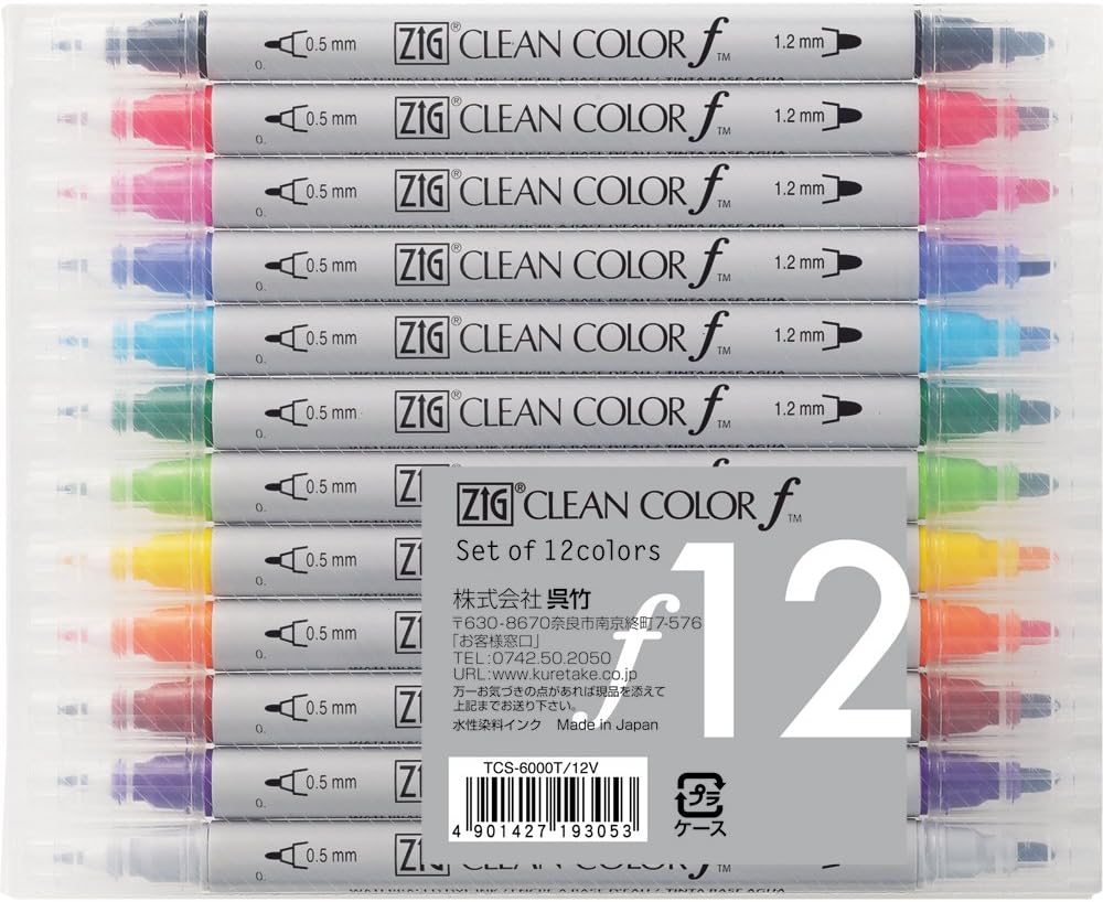 Kuretake Zig Twin Tip Marker Clean Color f, 12 Color Set (TCS-6000T/12V)