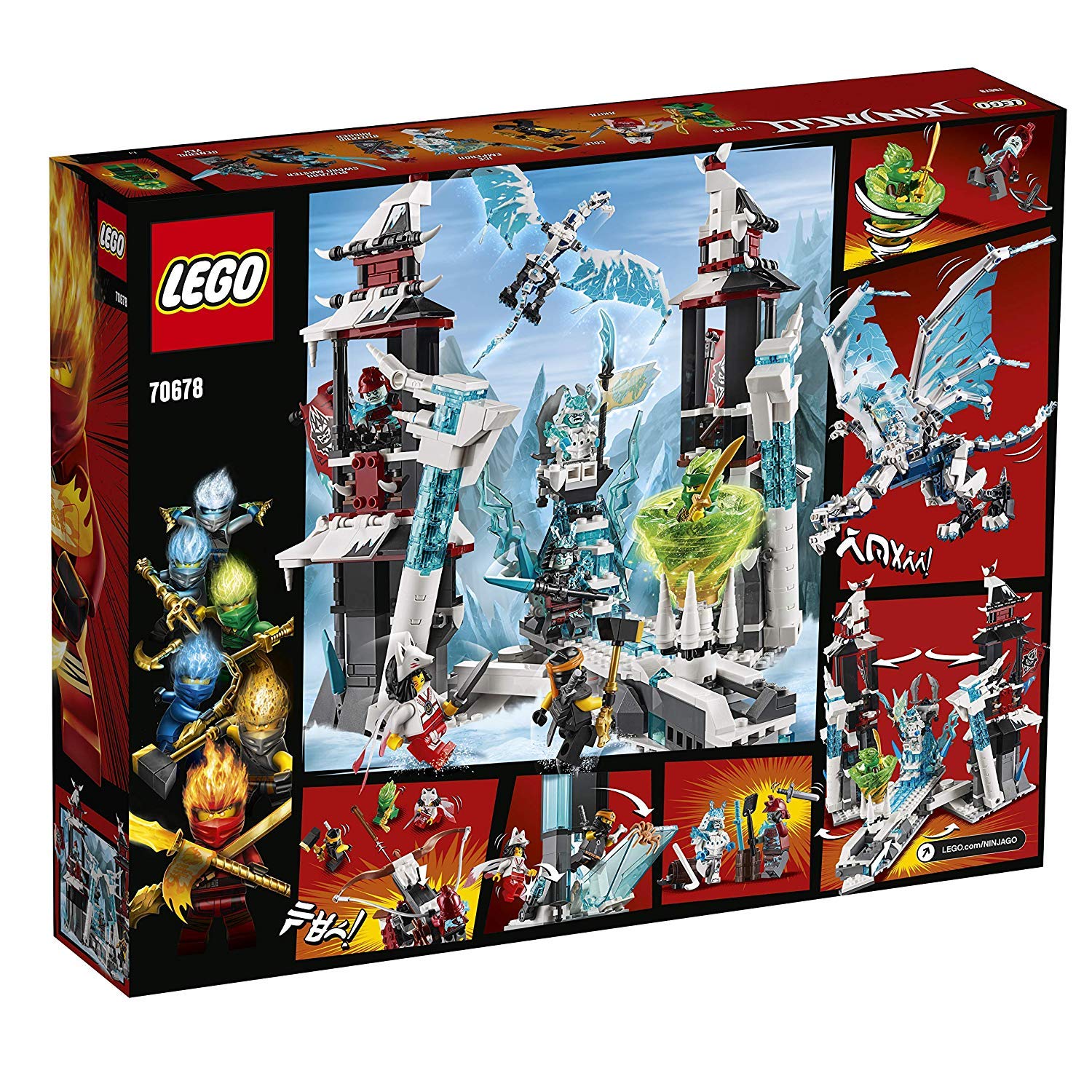 Details: Kids can replay ninja battles against the Ice Emperor, General Vex and Blizzard Samurai Warriors with this ice castle. LEGO® NINJAGO® Forgotten Emperor's Castle 70678 features the Ice Emperor's Throne, 2 towers (1 with a stud crossbow) and a separate ice tower with a spring-loaded rifle and ice prison. Kids will love replaying scenes from the NINJAGO TV series or making up their own stories with the 7 minifigures, the Mobile Ice Dragon and many super cool accessories, including the Ice Emperor's Forbidden Spinjitzu Scroll and Lloyd FS Tornado Spinning Top – new for June 2019.