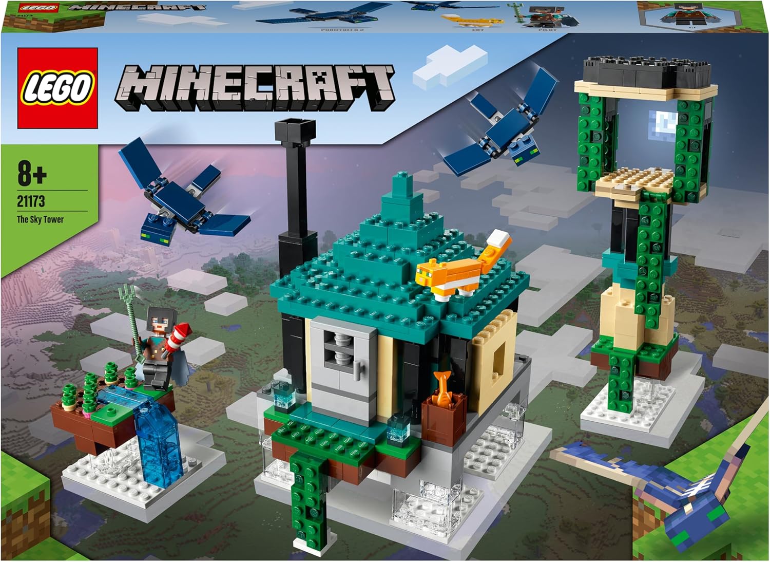 LEGO 21173 Minecraft Tower of The Sky Toy for Boys and Girls with PILOT Figures, Cat and 2 Flying Phantoms