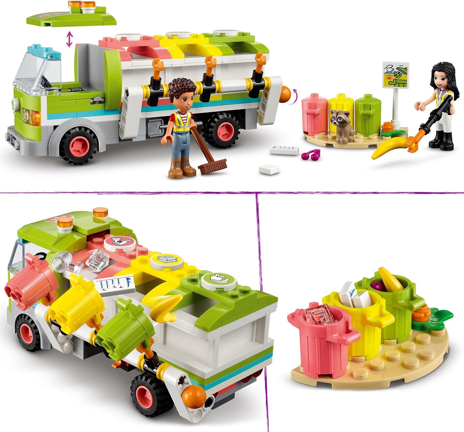 LEGO 41712 Friends Recycling Truck Toy for 6 Year Old Kids with Dumpsters and Trash Bins, Educational and Fun Set on Garbage Collector Craft