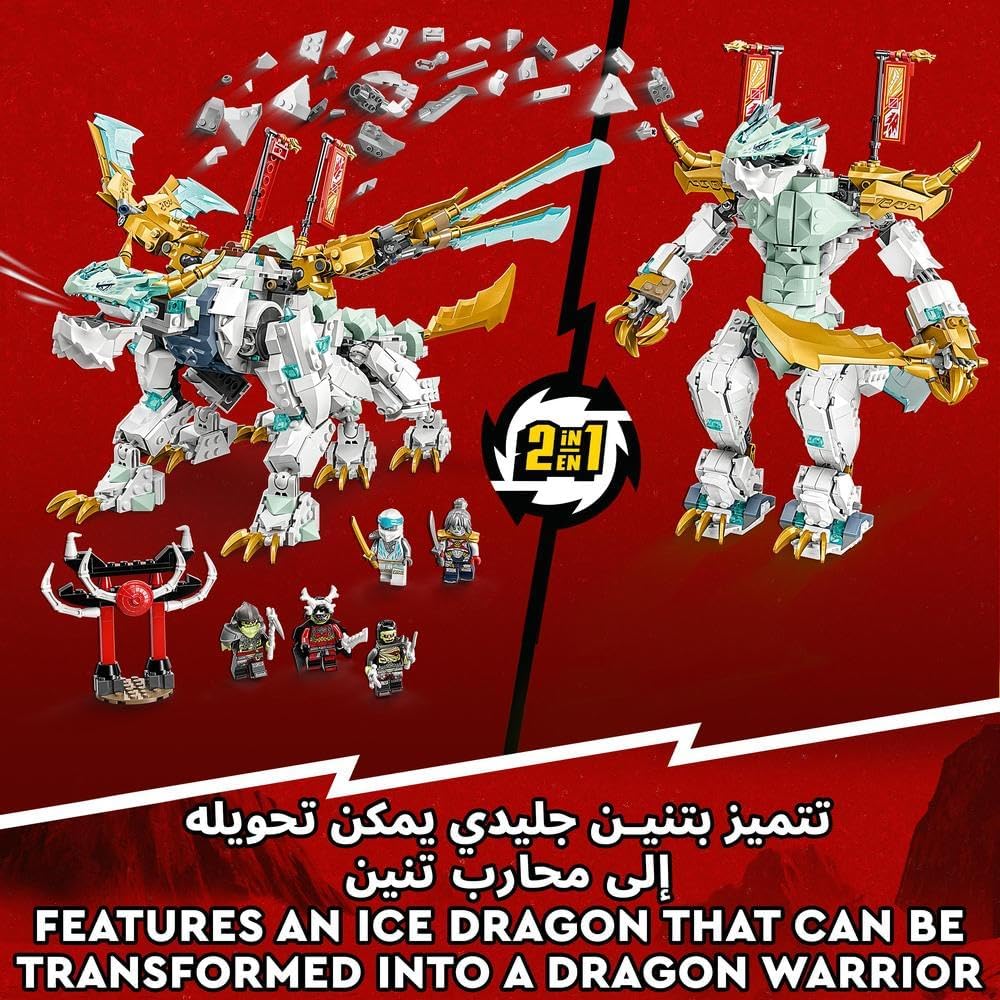 LEGO 71786 NINJAGO Zane's Ice Dragon 2 in 1 Building Kit with Ninja Action Figure, Building Toy with Rebuild and Arm Dragon Toy for Kids, Gift Idea, from 10 Years