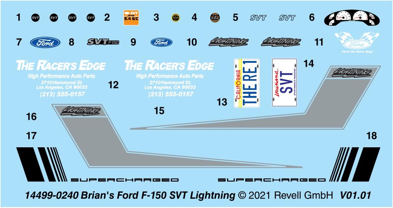 Revell 85-4499 Fast and Furious Brian Ford SVT Lightning Model Car Kit 1:25 Scale 118 Piece Skill Level 4 Plastic Model Building Kit Red