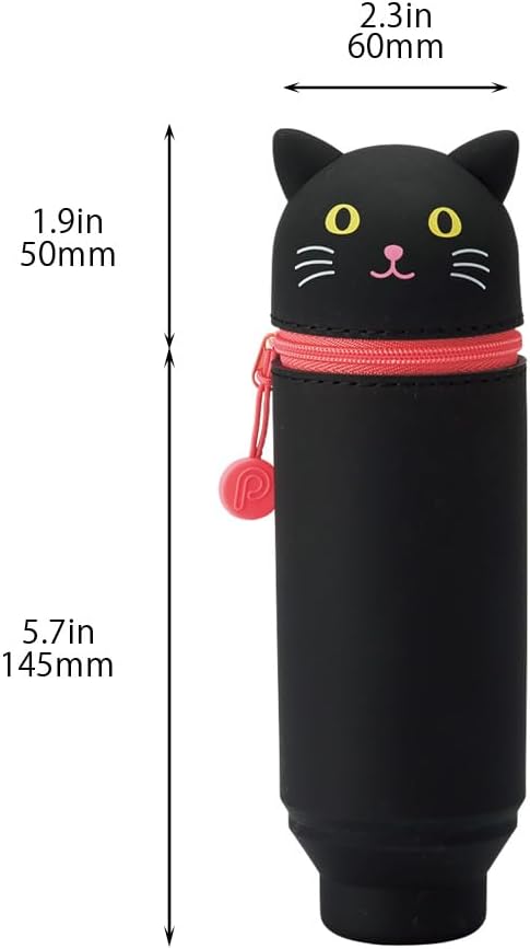 LIHIT LAB Kawaii Japanese Black Cat Stand Up Pencil Case For School Office College, Cute School Supplies, Animal Pen Holder Pouch Holder Teen Girls Artists, Travel Cosmetics Storage (A7712-3)