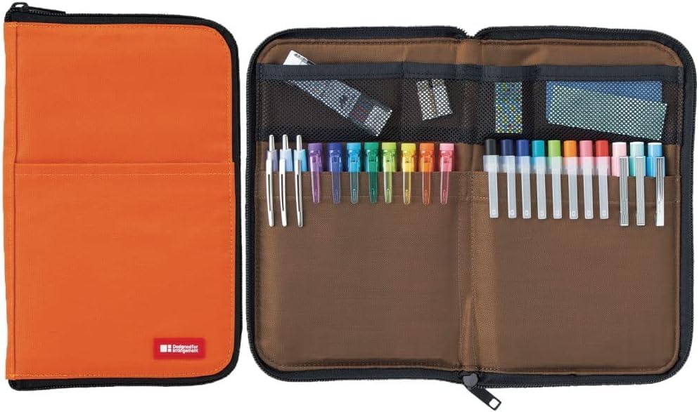 LIHITLAB Slim Pen/Pencil Pouch, Wide, 0.7 × 5.5 × 8.5 Inches, Orange (A7653-4)