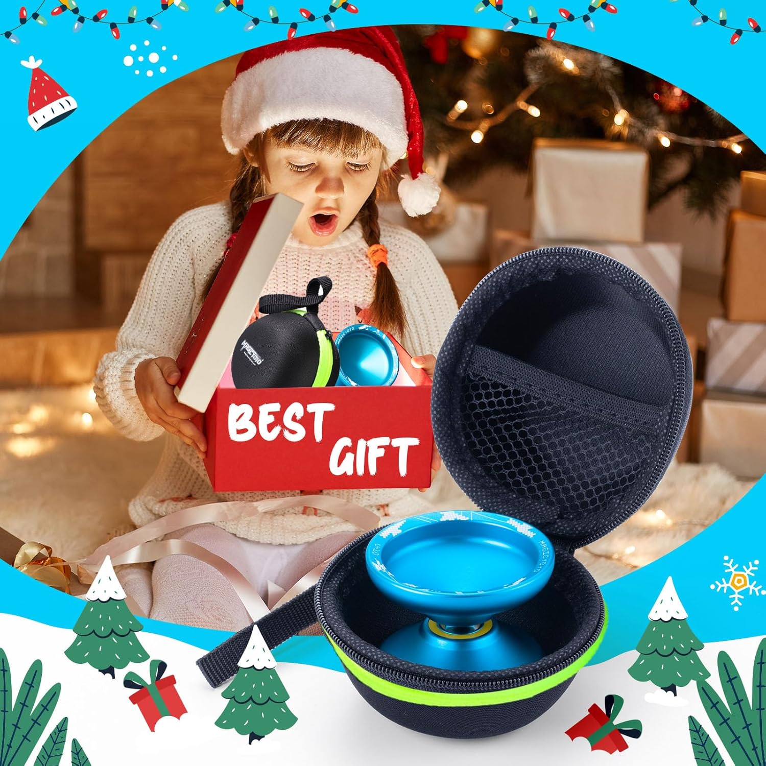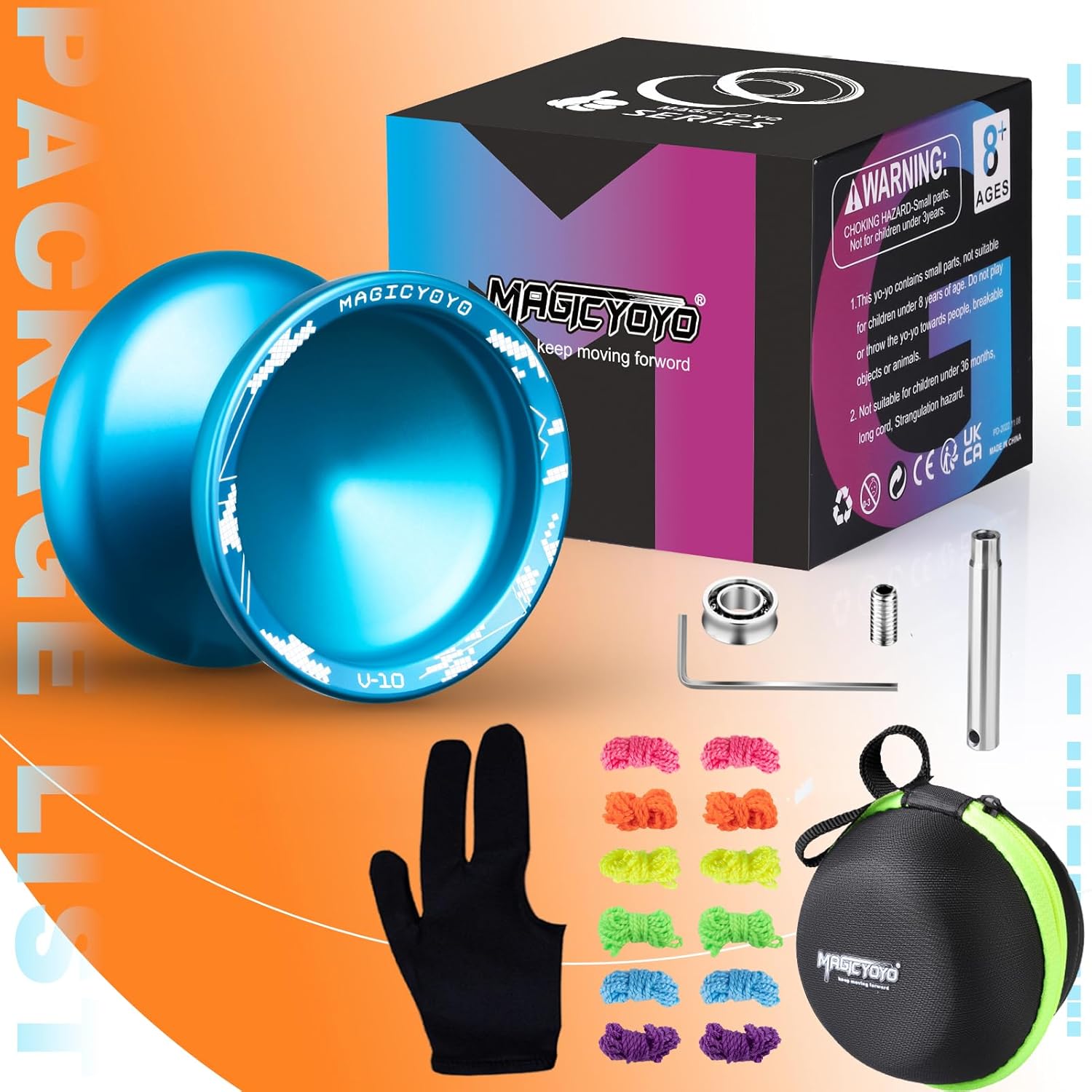 MAGICYOYO V10 Finger Spin Yoyo Professional Metal Trick Yoyo Responsive & Unresponsive Dual Purpose Yo Yo with Storage Case + Yo Yo Glove +12 Strings(Blue)