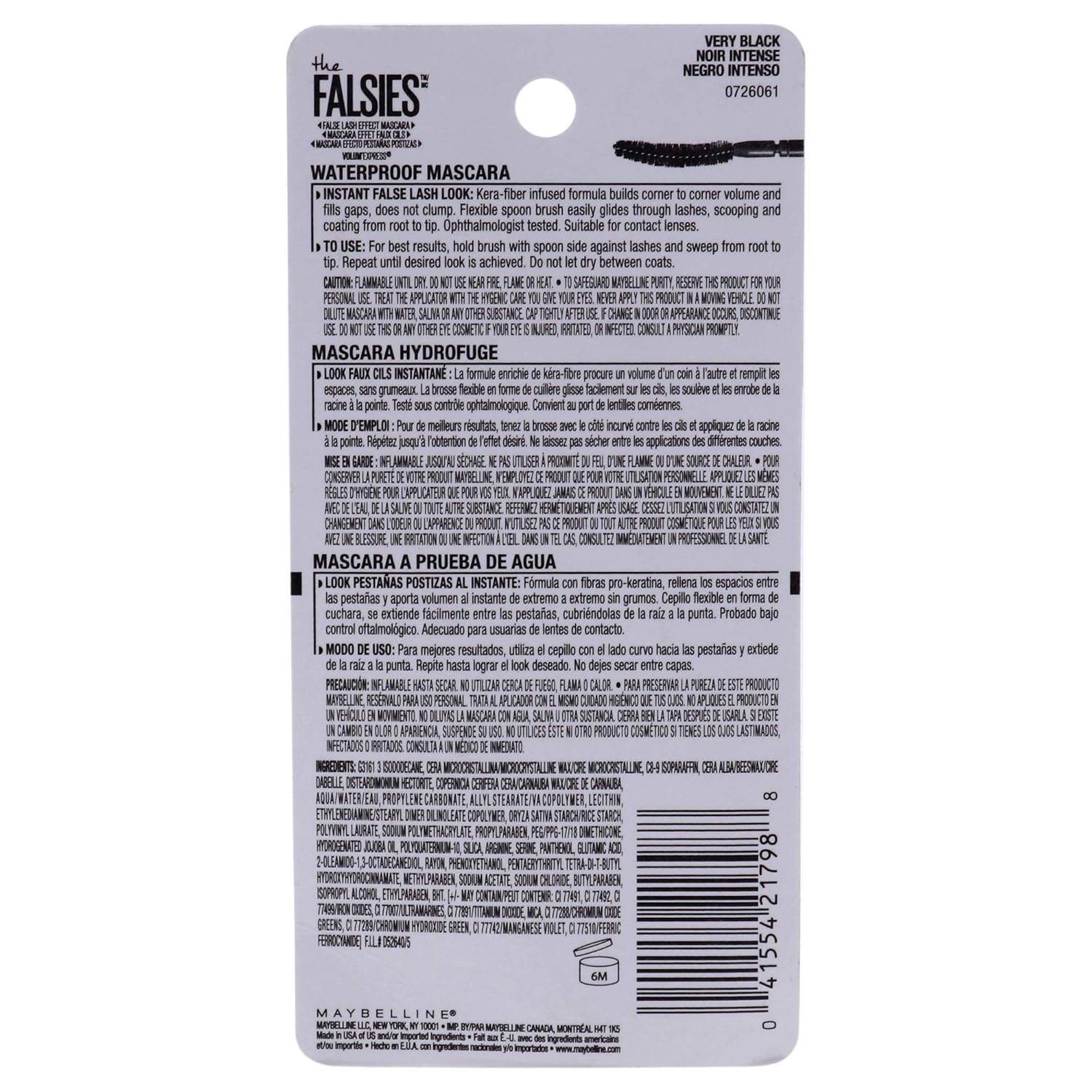 Maybelline Volum' Express The Falsies Waterproof Mascara, Volumizing and Separating Make Up Formula, Very Black, 1 Count