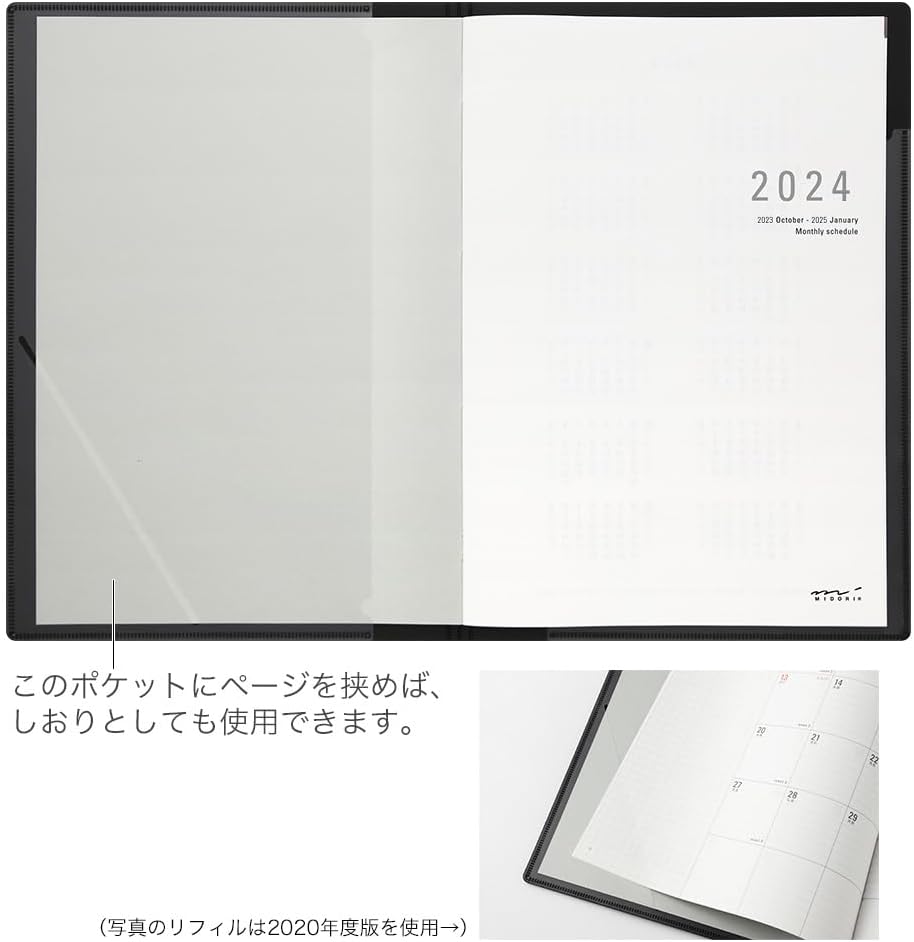 Midori 22280006 Flat Diary Notebook, 2024, A5, Monthly, White, Starts October 2023 (A4)