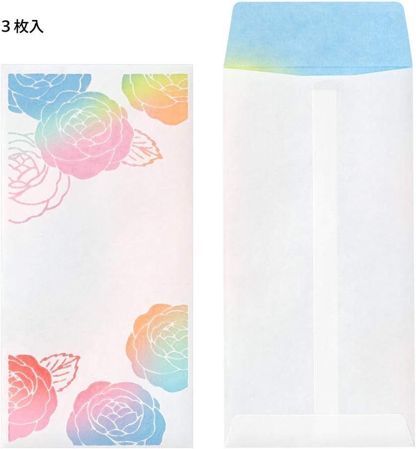 Midori 25490006 Celebration Bag, Gold Sealing, 490, Noshi Bag, Light Blue, Rose Pattern