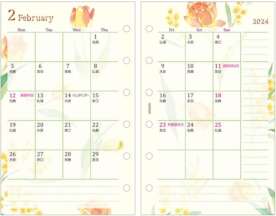 Midori 27088006 2024 B7 Monthly Country Time Planner Refill, Starts December 2023 (country time floral pattern)