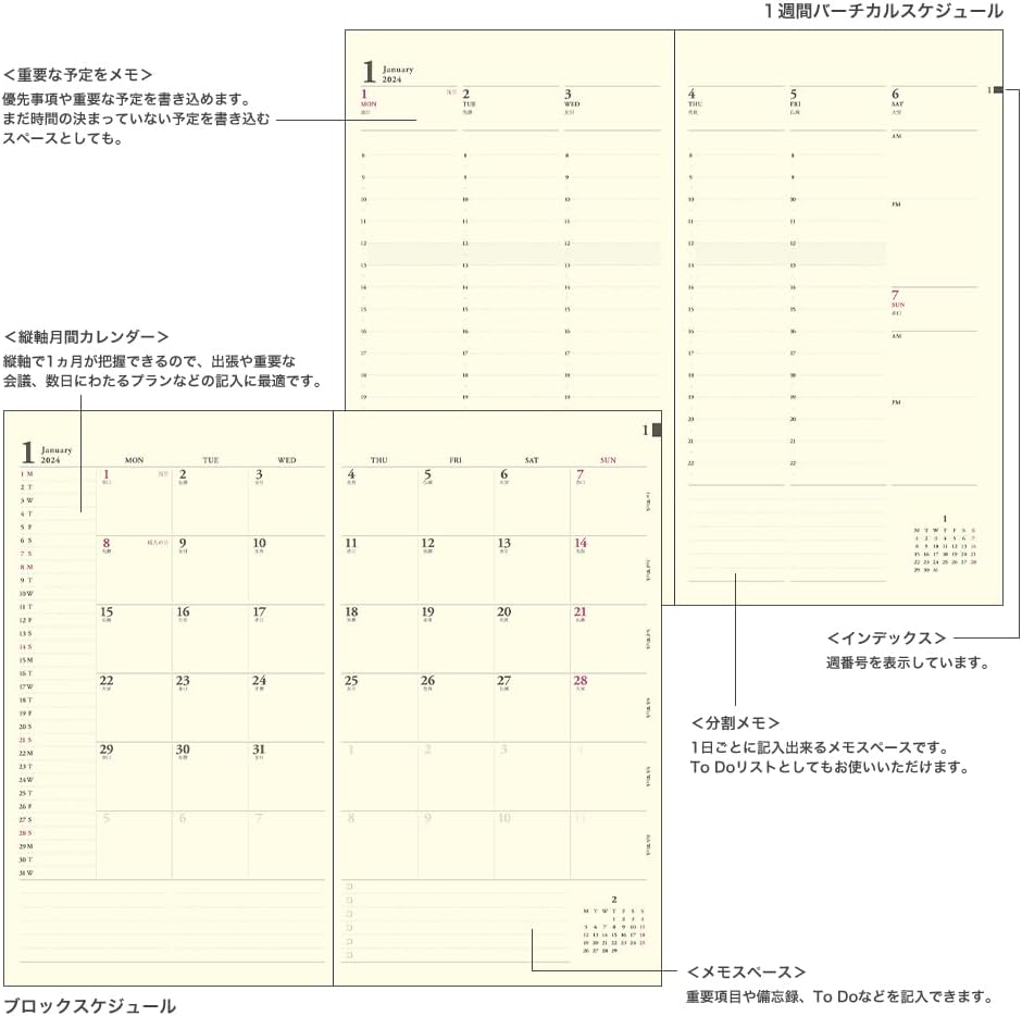Midori 27097006 Professional Diary Notebook, 2024, A5 Slim, Weekly, Star Pattern (Starts December 2023) (black)