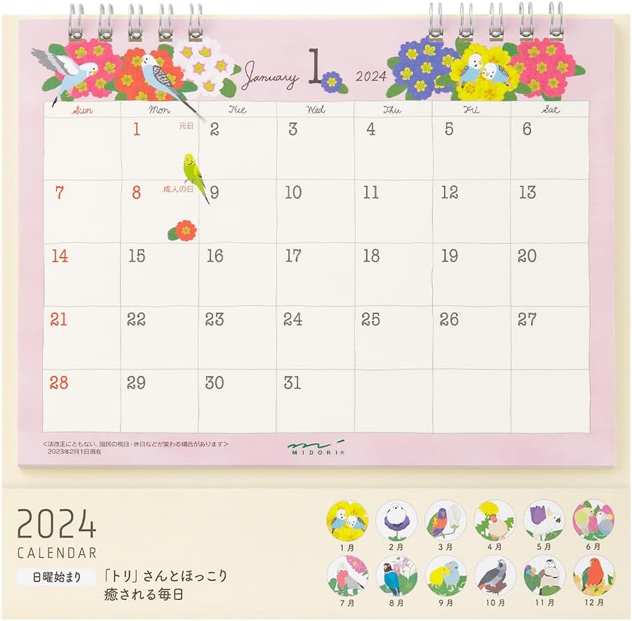 Midori 31273006 2024 Calendar, Tabletop, M, Country Time Floral Pattern (cat pattern)