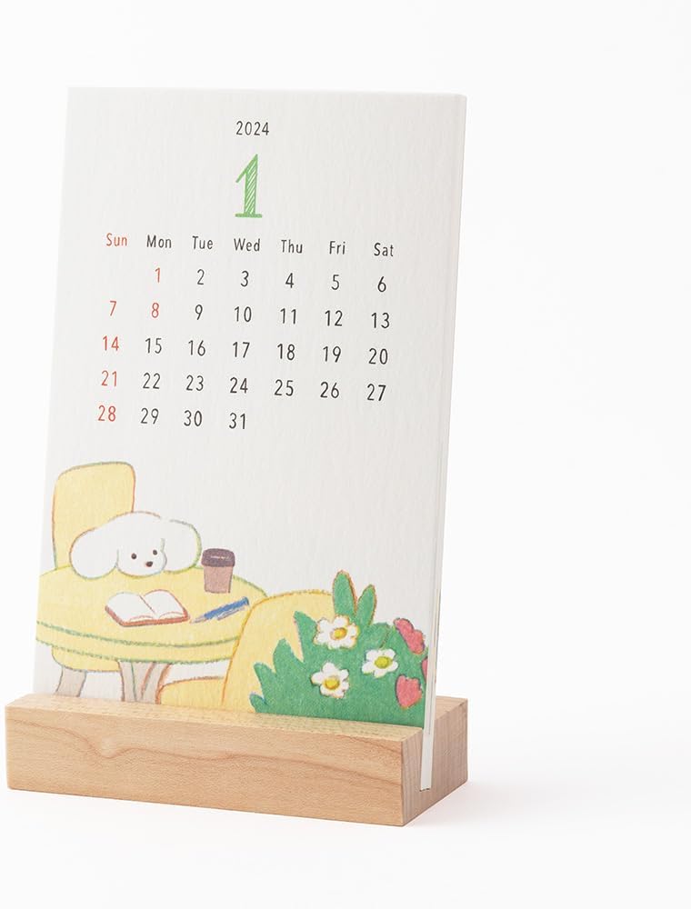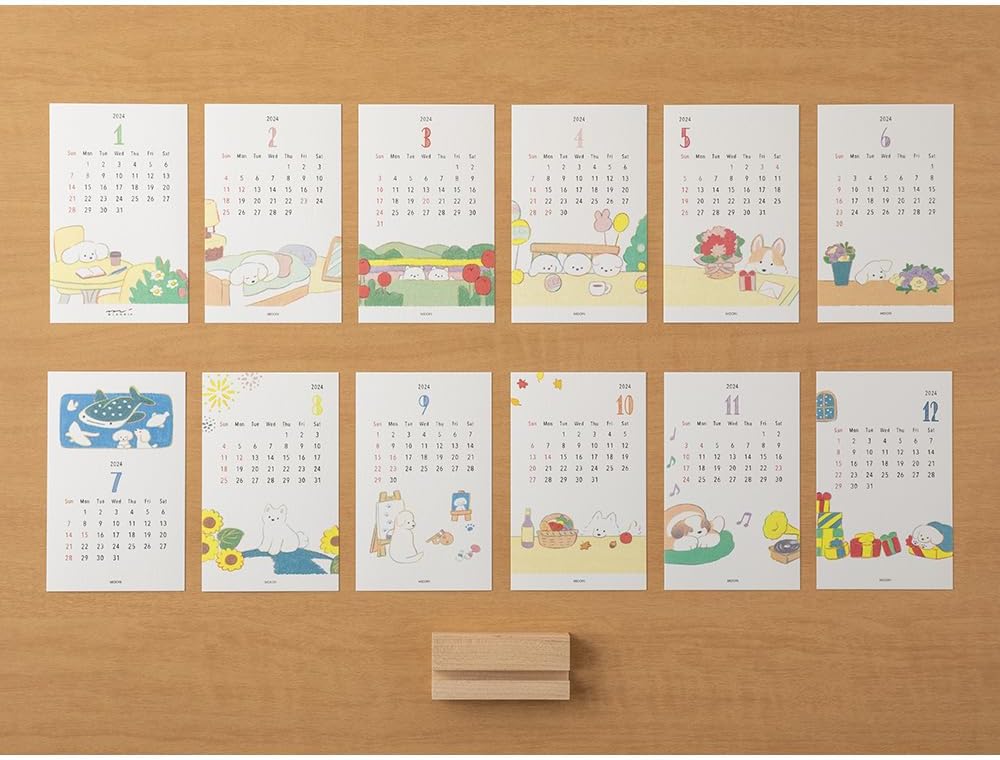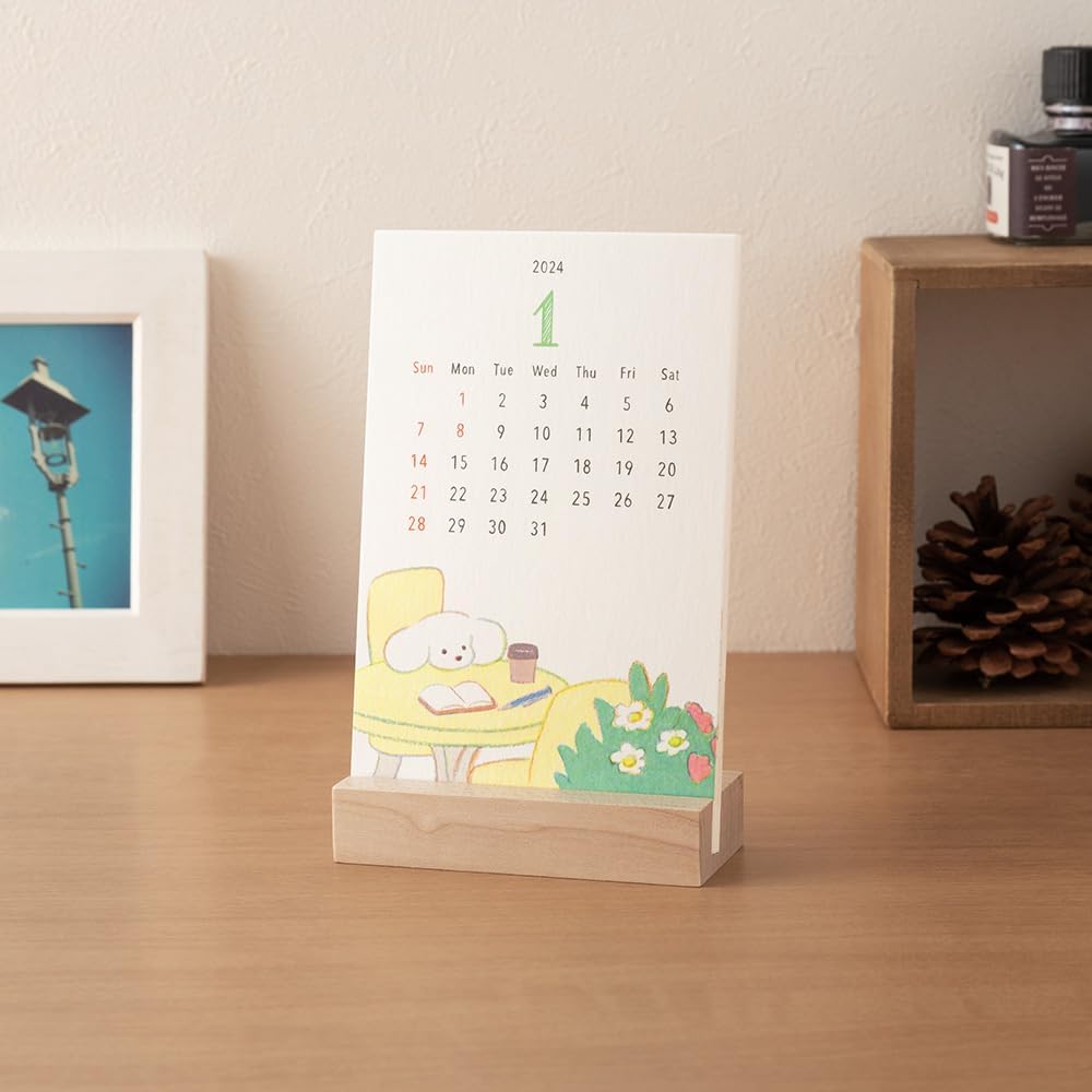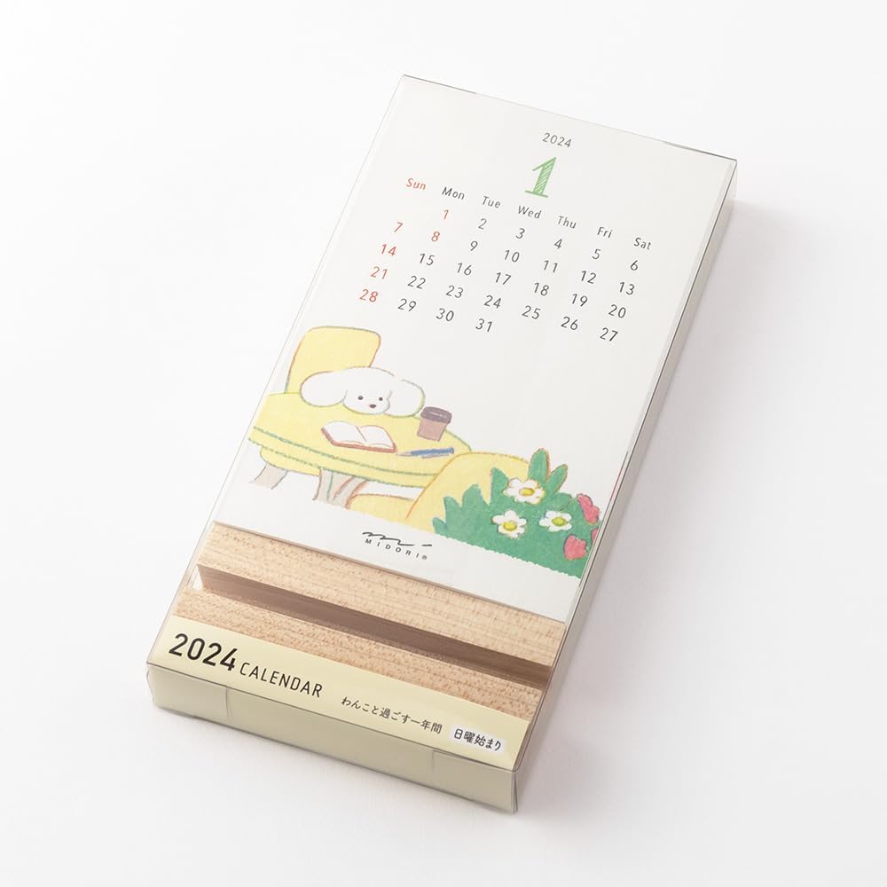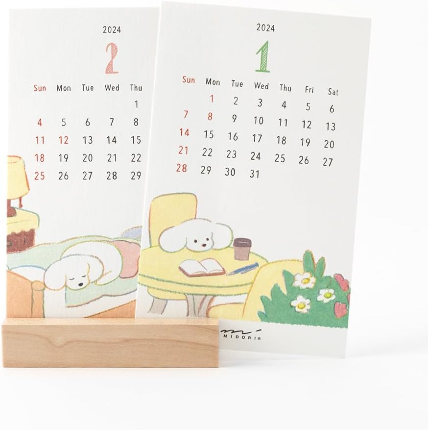 Midori 31278006 2024 Calendar, Tabletop Stand, Dog Pattern (Dog Print)