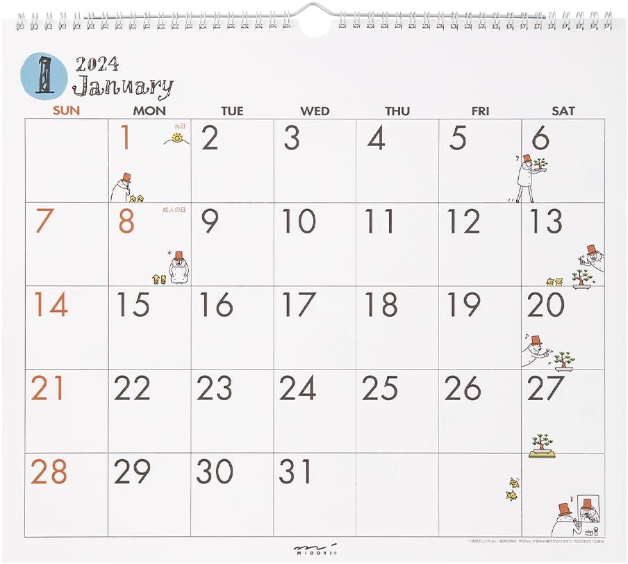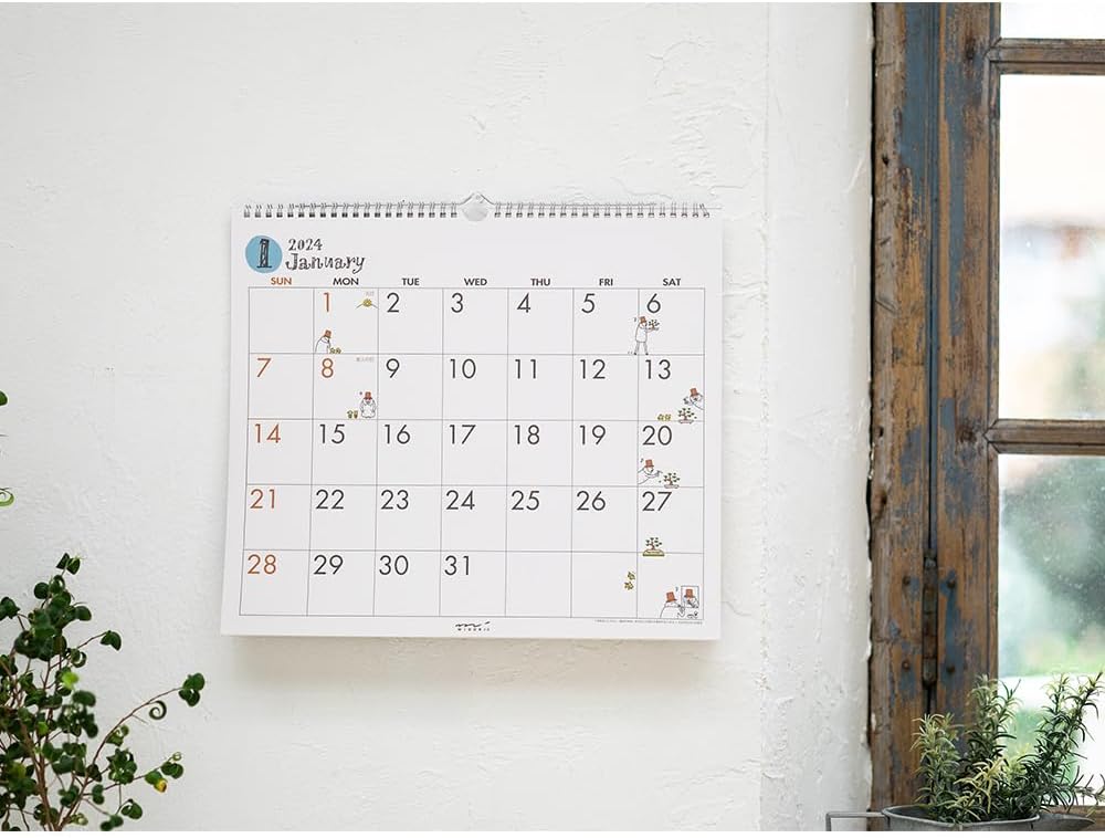 Midori 31287006 2024 Wall Calendar, Large, Country Time Floral Pattern (Ojisan Print)