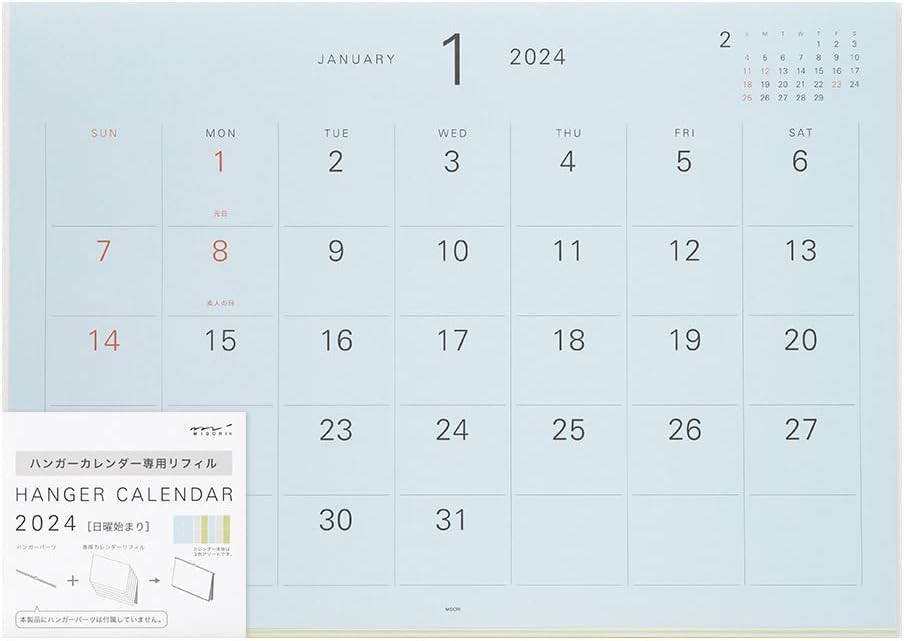 Midori 31295006 2024 Wall Calendar, Hanger Calendar, Refill, White (color)