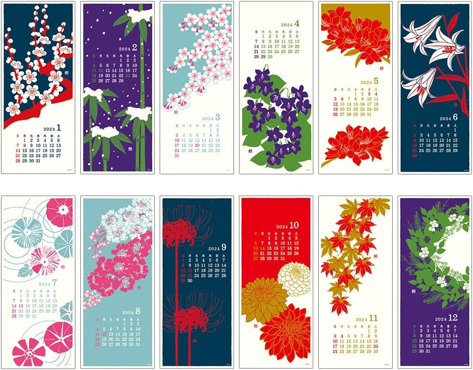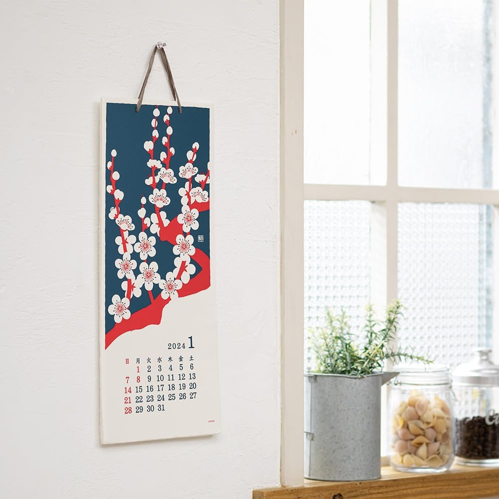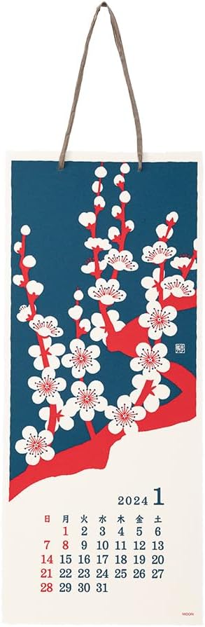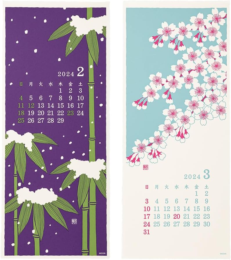 Midori 3130006 2024 Calendar, Wall Hanging, L, Echizen Washi Paper, Traditional Pattern (L (Stalk))