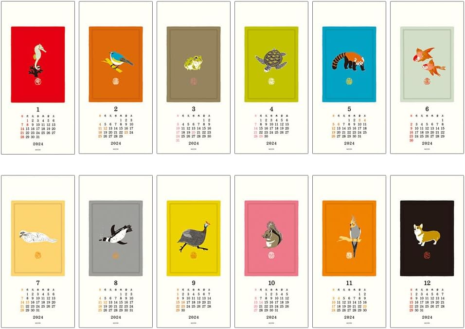 Midori 3130006 2024 Calendar, Wall Hanging, L, Echizen Washi Paper, Traditional Pattern (S (animal handle))