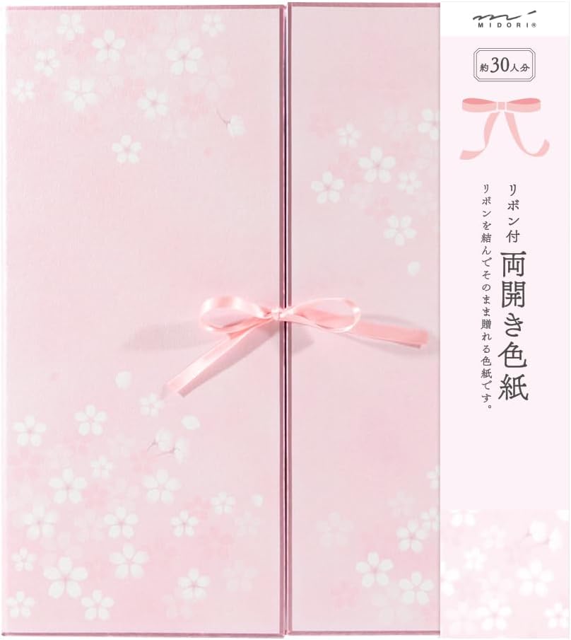 Midori 33146006 Colored Paper, Colored Paper, Double Opening, Ribbon, Cherry Blossom Pattern