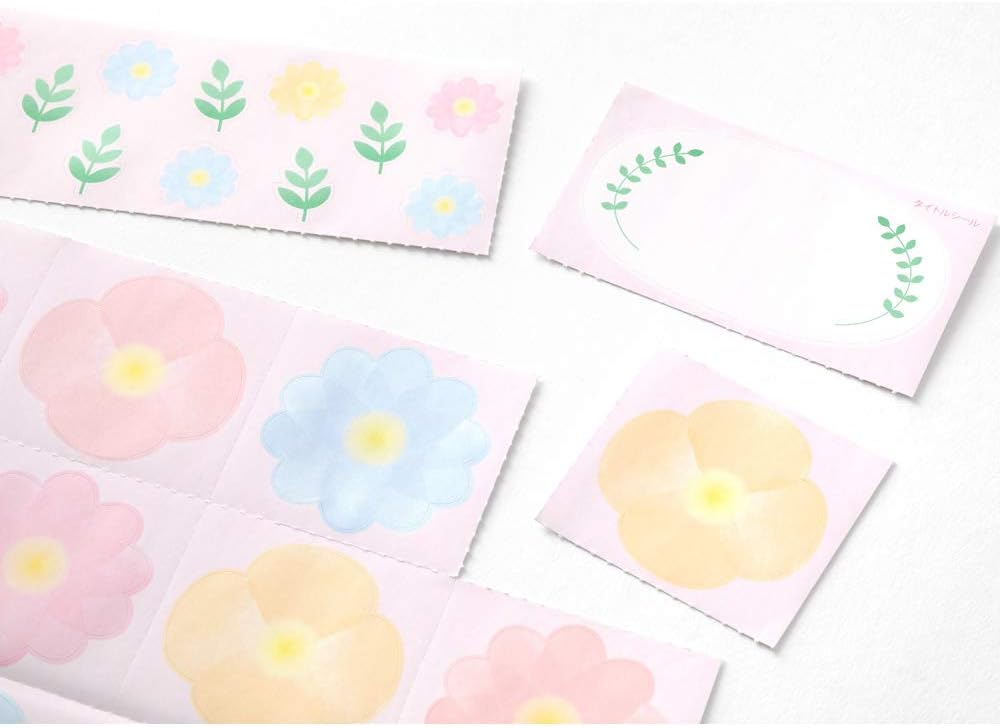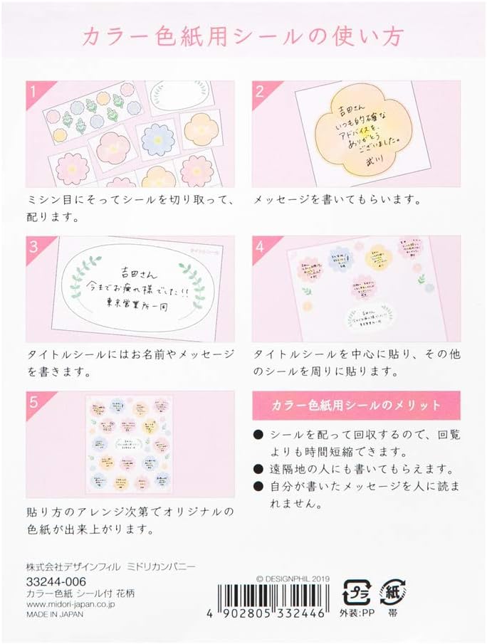 Midori 33244006 Colored Paper with Stickers, Floral Pattern