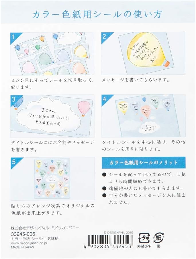 Midori 33245006 Colored Paper with Stickers, Balloon Pattern