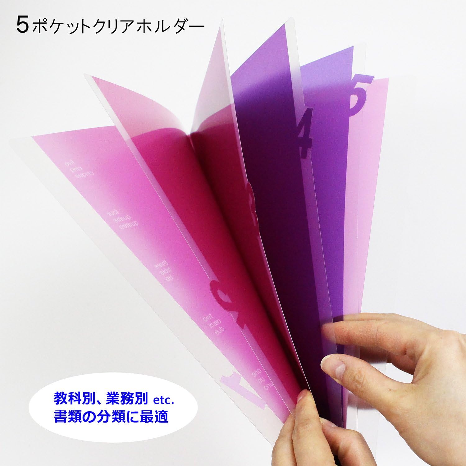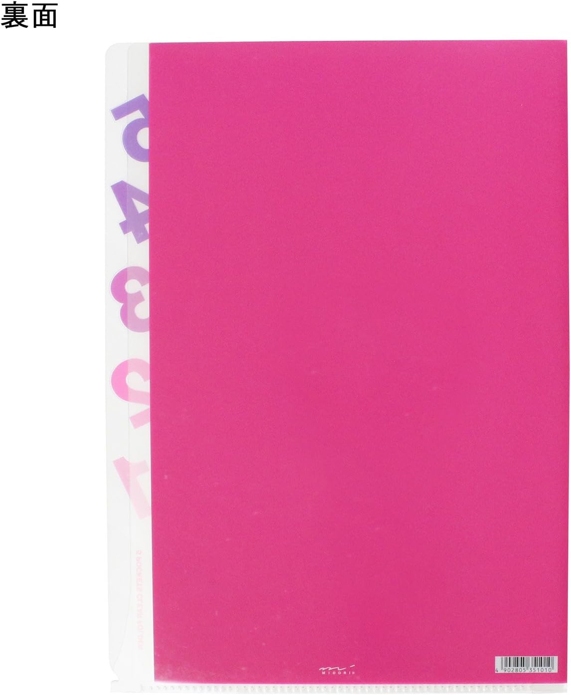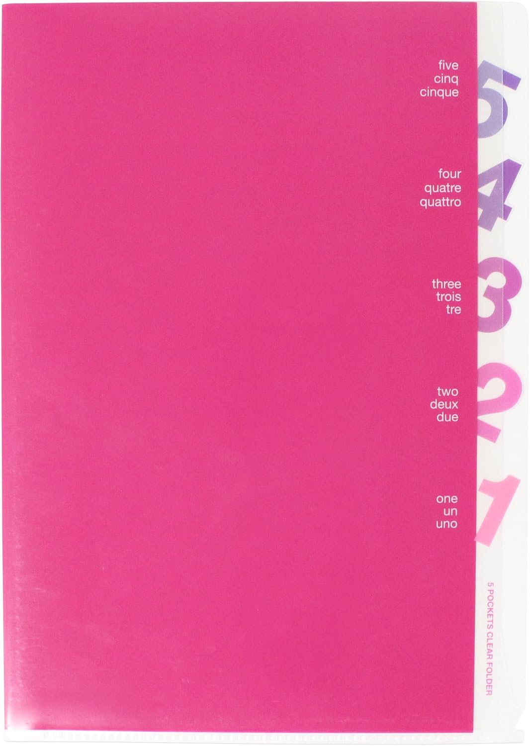 Midori 35101006 Clear File 5 Pocket Clear Holder, A4, Die Cut, Number Pattern, Pink