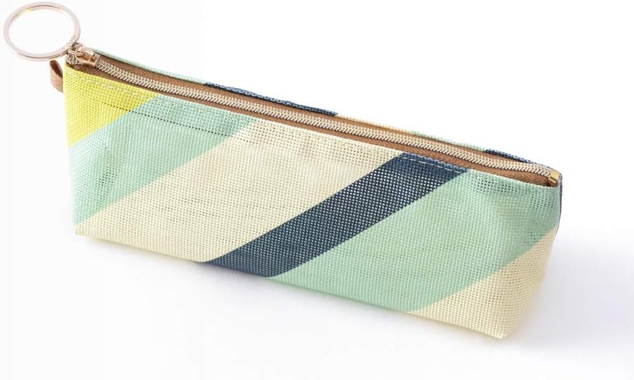 Midori 41800006 Pencil Case, Mesh, Striped Pattern, Yellow-Green