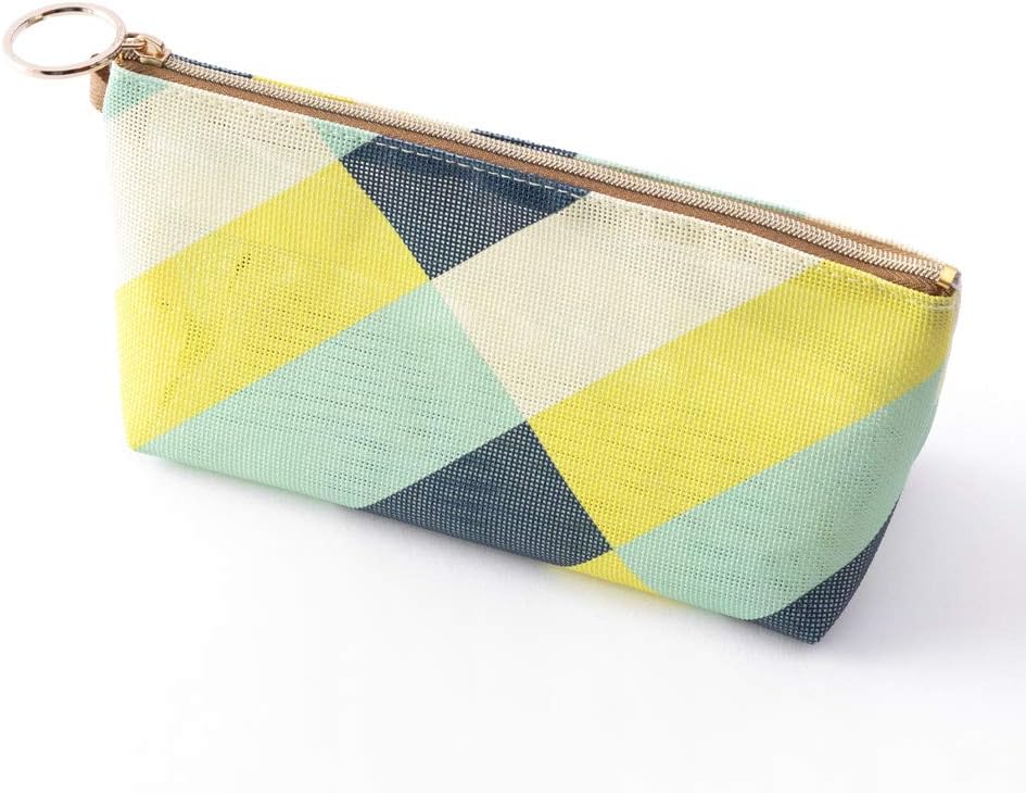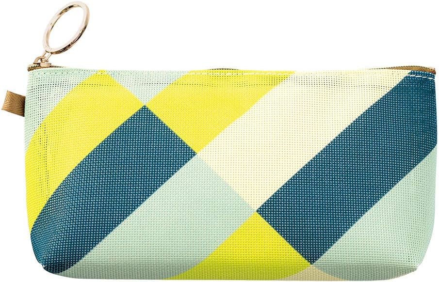 Midori 53336006 Pouch with Gusset, Mesh, Striped Pattern, Yellow-Green