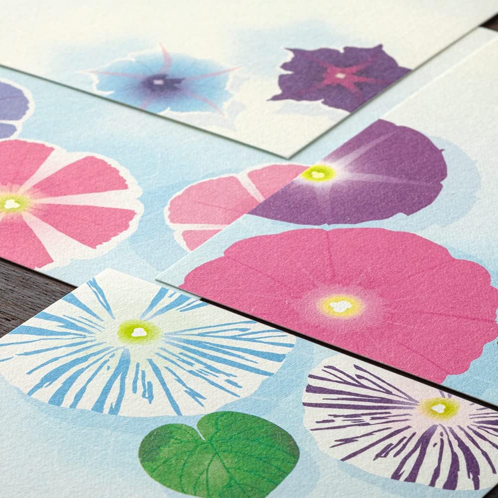 Midori 88687006 Postcard Notes, Paper Series, Summer Letter, 4 Patterns, Morning Glory Hand Water Pattern