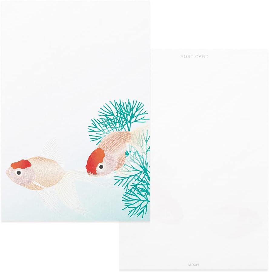 Midori 88689006 Postcard Notes, Paper Series, Summer Letter, Silk, Goldfish and Aquatic Plant Pattern
