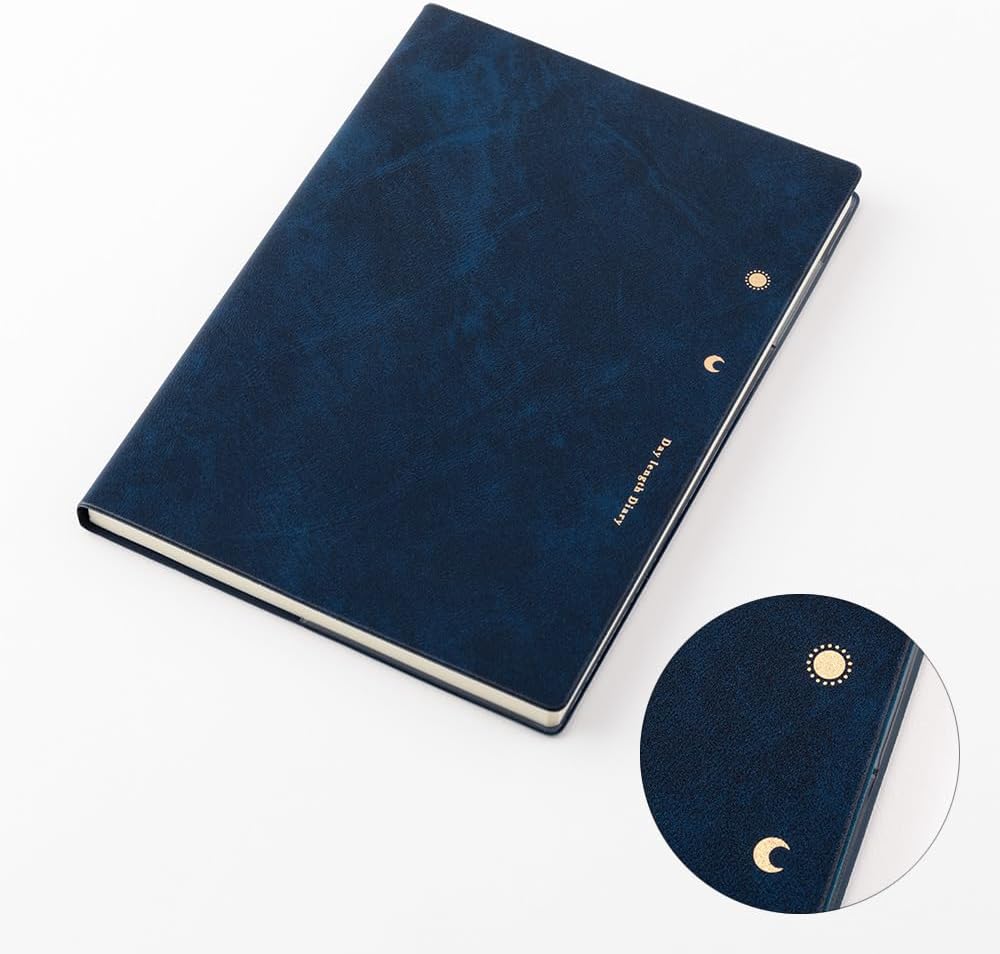 The Midori Day Length Notebook 2024 (22287006) is a B6-sized weekly planner that begins in December 2023. Featuring a white design with a navy cover, this compact and stylish Japanese planner is perfect for keeping track of appointments, schedules, and goals throughout 2024.