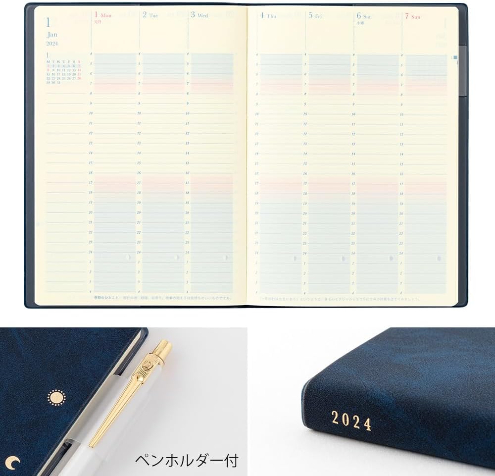 Midori 22287006 Day Length Notebook, 2024, B6, Weekly, White, Starts December 2023 (navy)