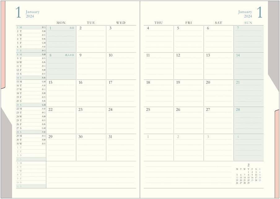 Midori Double Schedule Notebook 2024, B6 Monthly, Black/Beige (22262006, Starts October 2023)