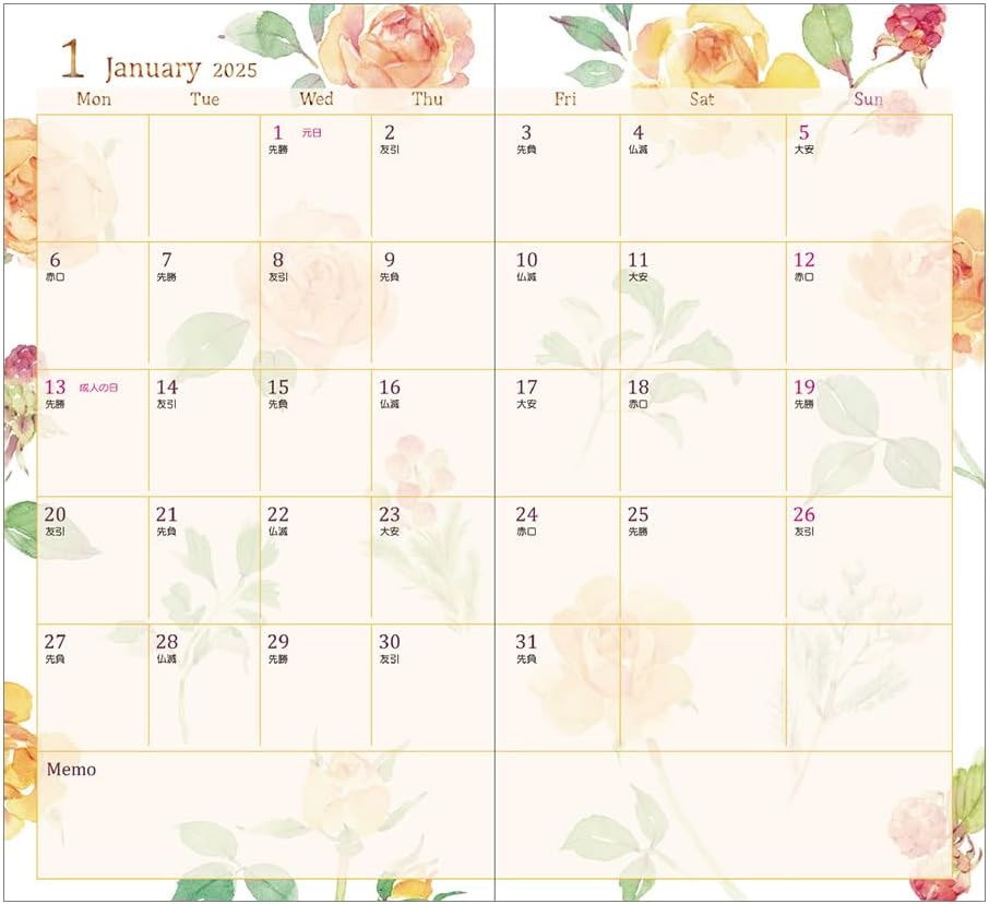 Midori Pocket Diary 2025 Slim Monthly Country Time Floral Pattern 22299006 (Begins January 2025)