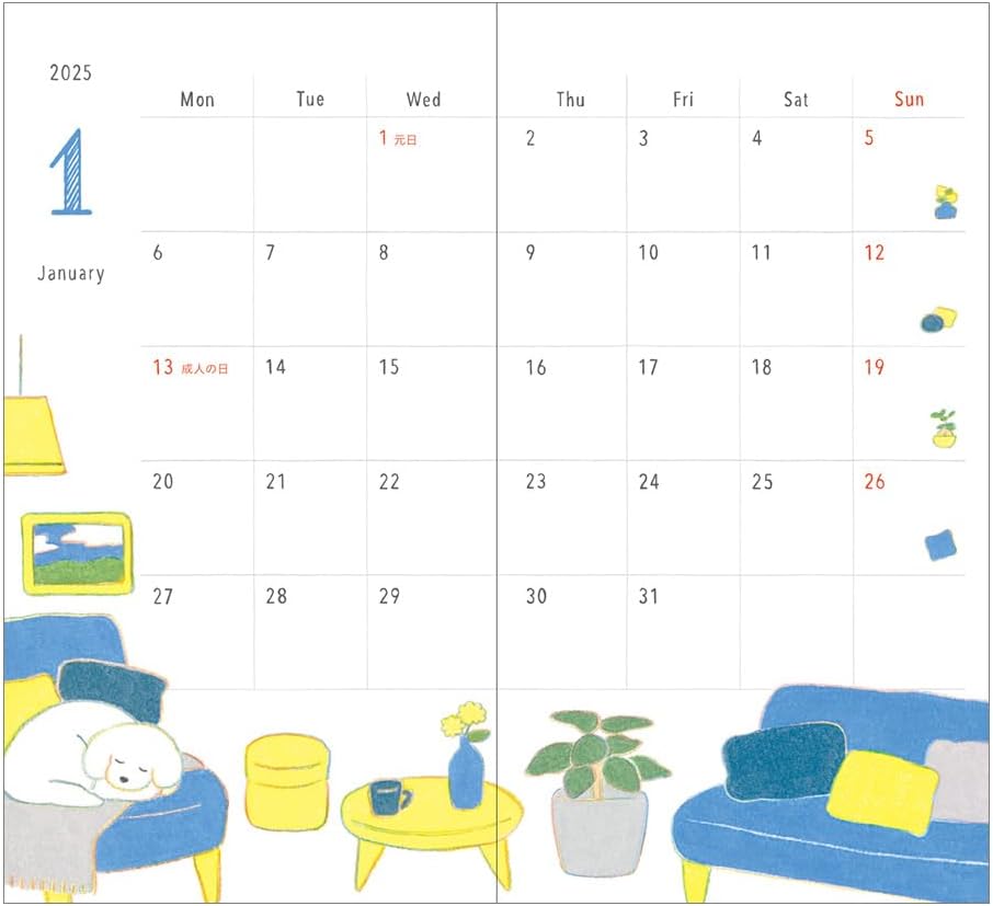Midori Pocket Diary 2025 Slim Monthly Dog Pattern 22297006 (Begins January 2025)