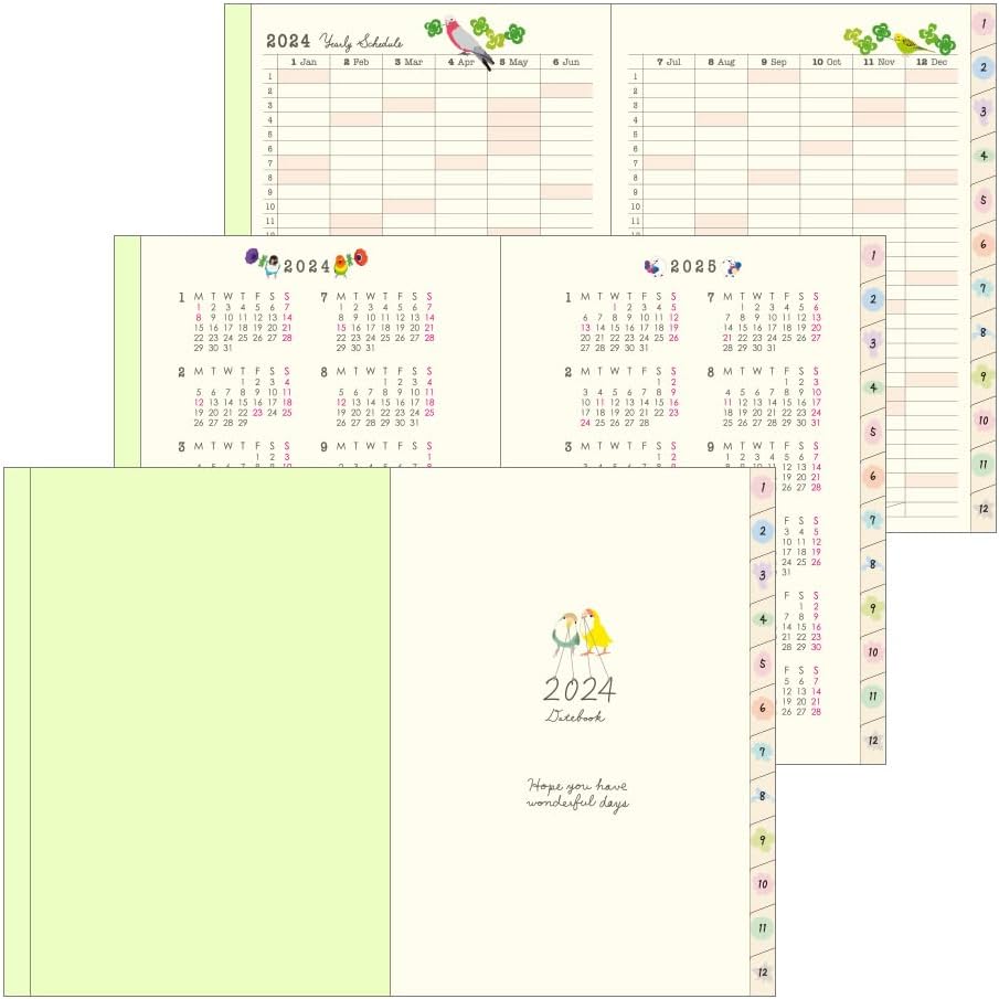 Midori Pocket Diary 22251006 Weekly Planner, 2024, A6, Clover Pattern, Starts January 2024 (bird pattern)