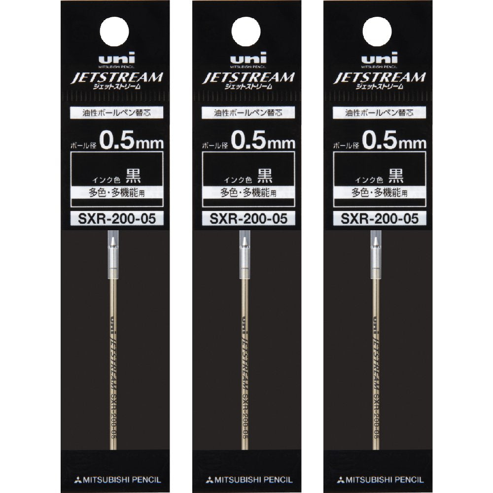 Mitsubishi Pencil SXR20005.24 Rollerball Pen Refill, Jetstream Prime 0.5, Multi-Color, Multifunctional, Black, 3 Pens