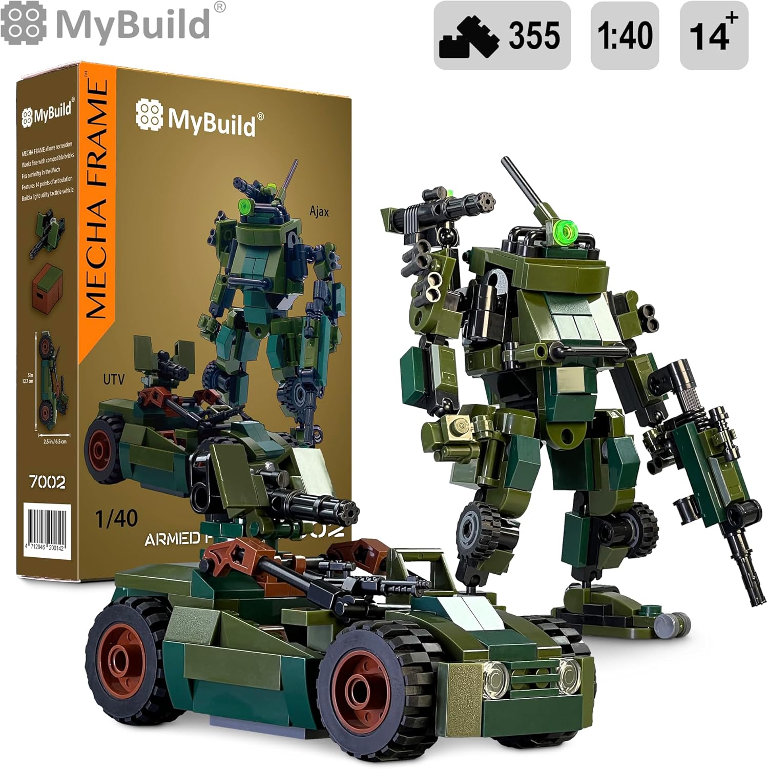 MyBuild Mecha Frame Armed Forces 7002 - Ajax Mech and Army Vehicle Building Toy Military Themed Builing Brick Set