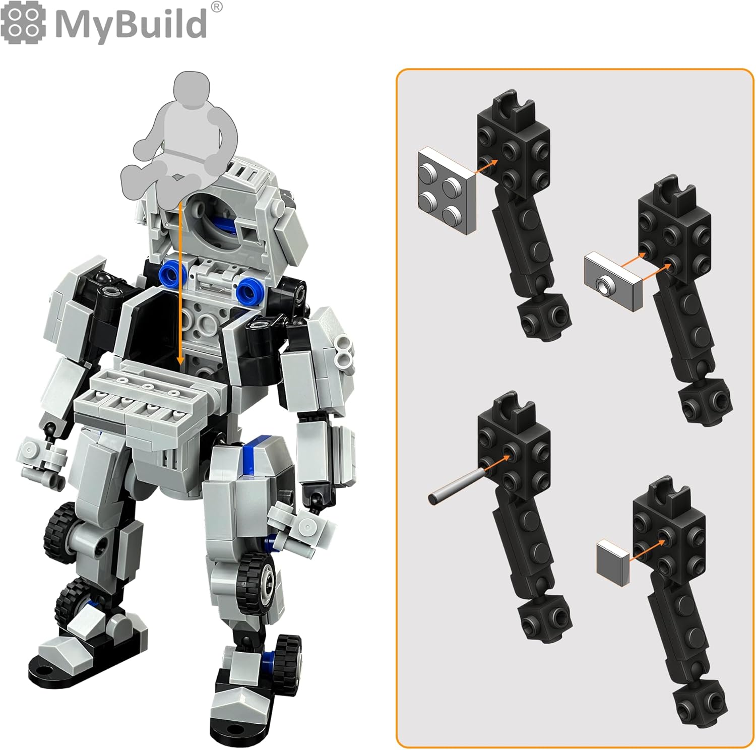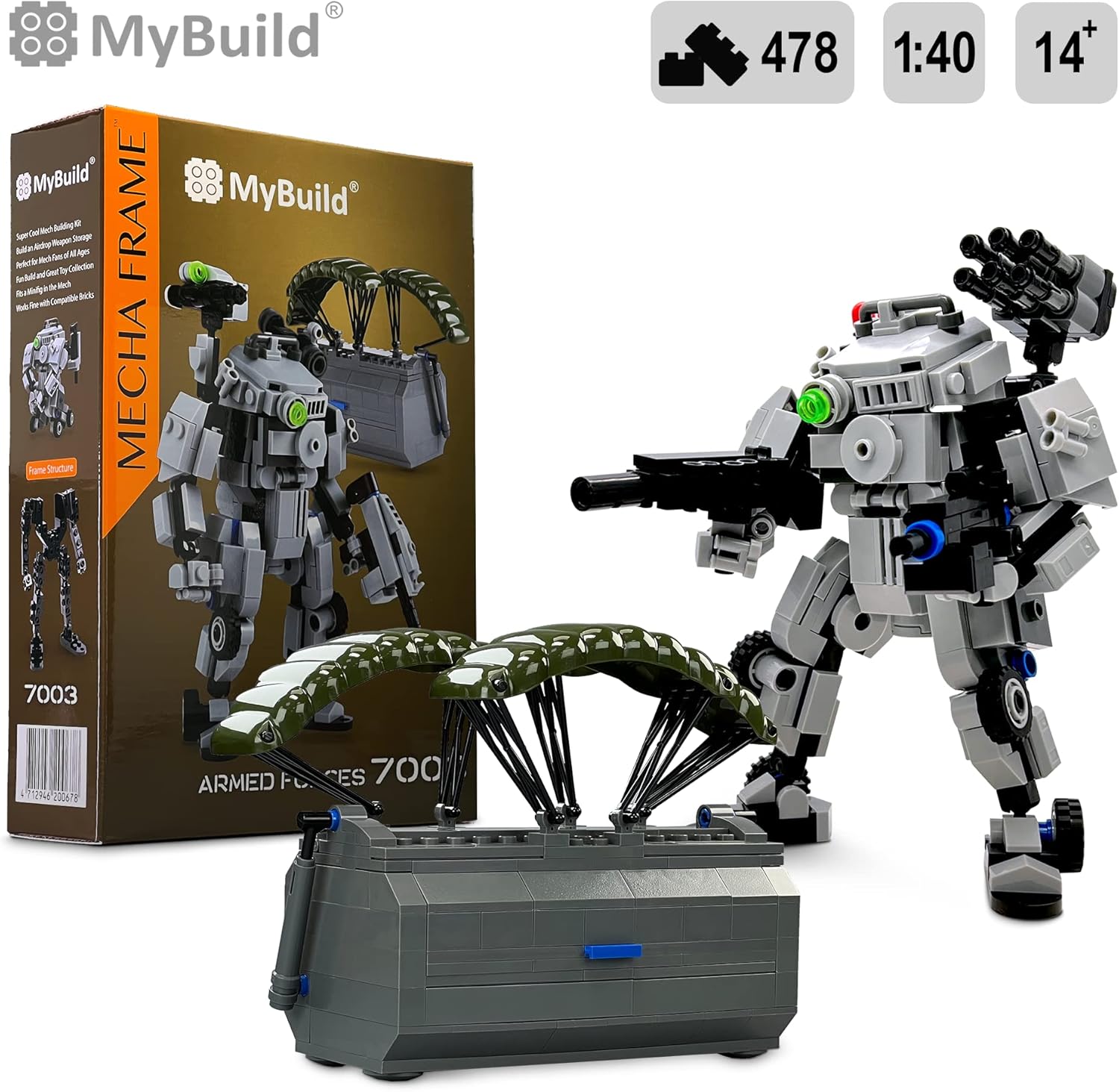 MyBuild Mecha Frame Armed Forces 7003 - Stryker Mech Light Gray with Commander Weapon Box, Military Themed Building Bricks for Mech Fans, Ages 14 and Up