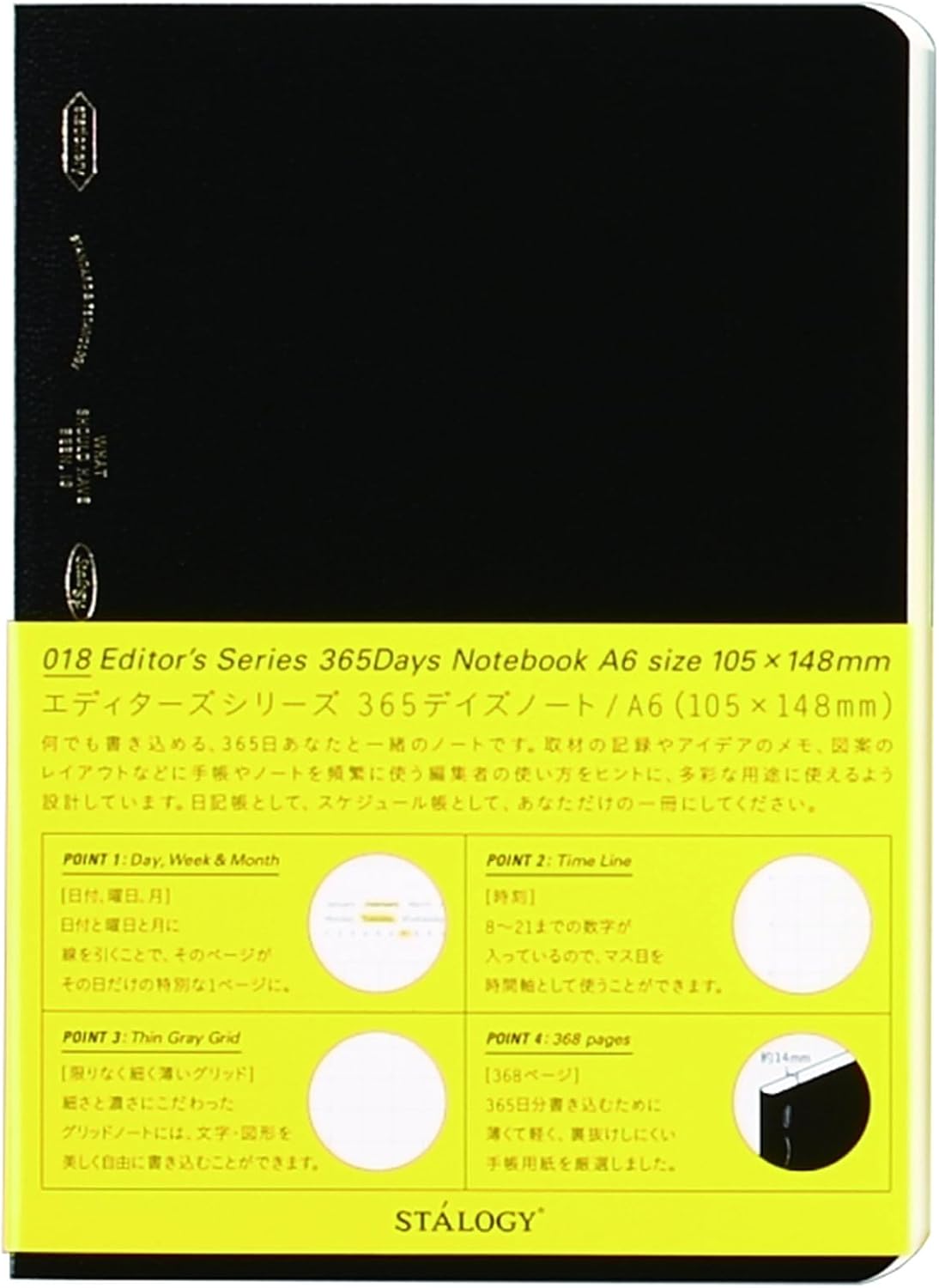 Nitoms S4103 STALOGY Notebook, A6, Squared, 365 Days Notebook, Black