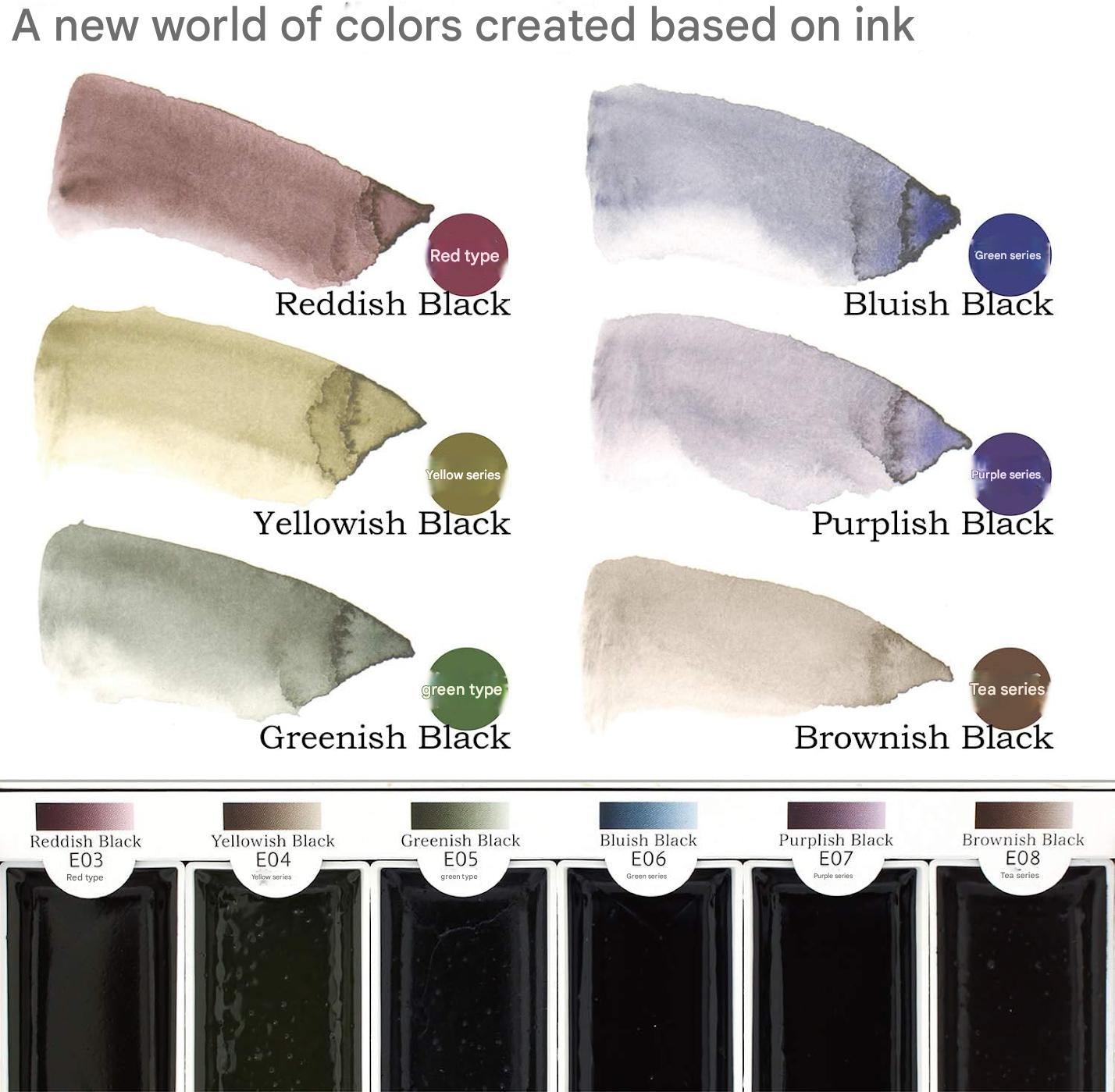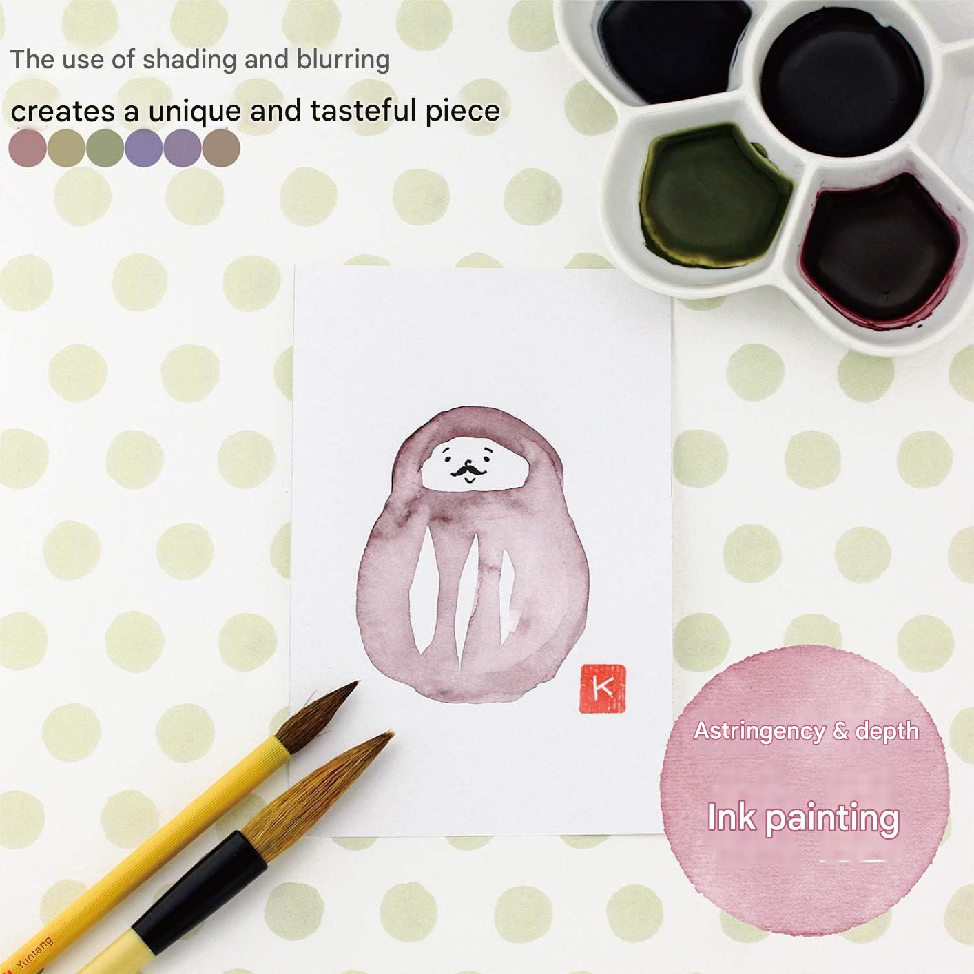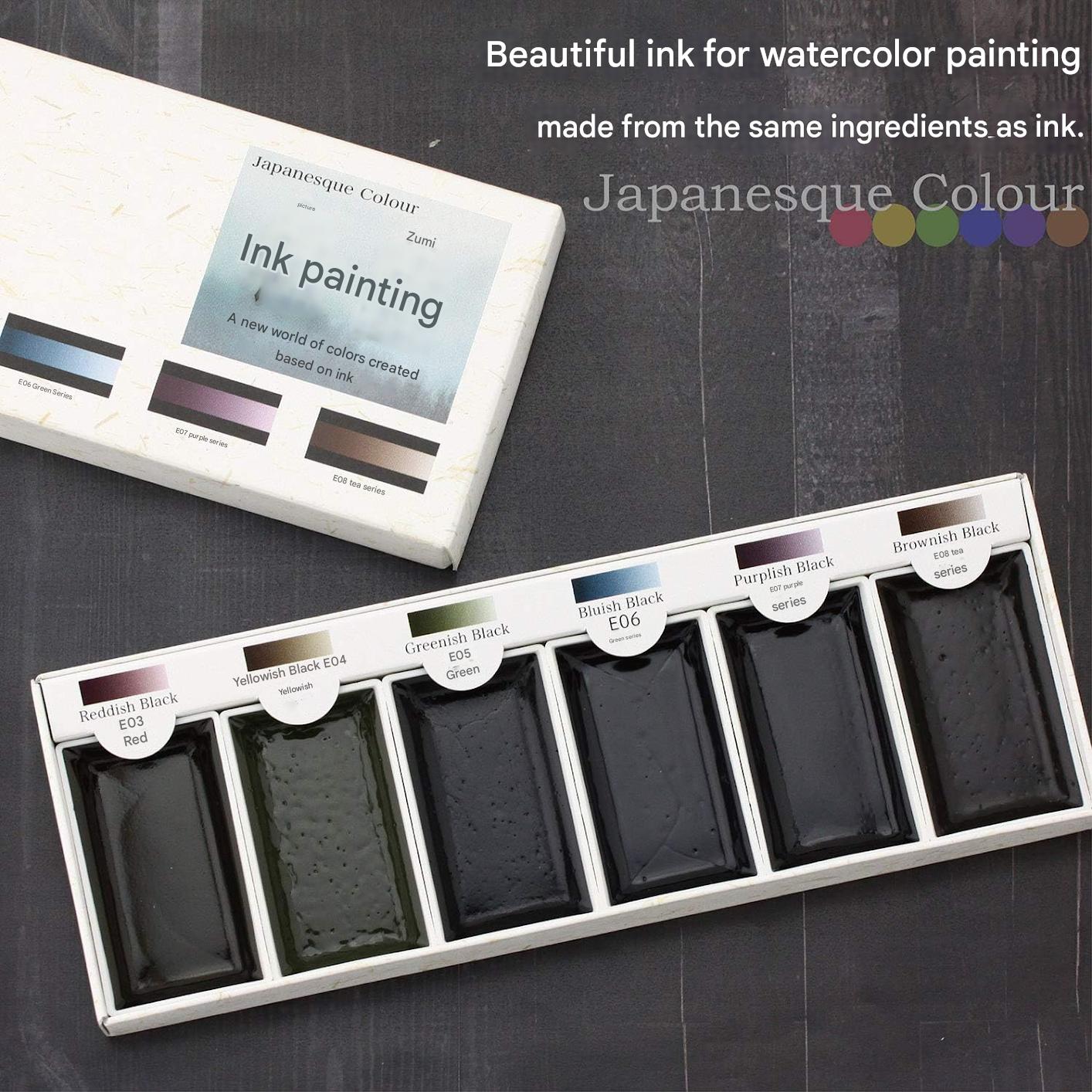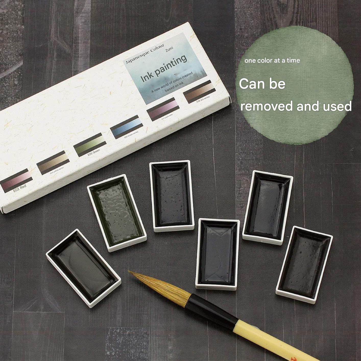 Bokuundo Watercolor Solid Ink Painting Ink Set of 6 Colors 15452