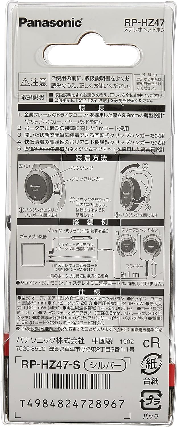 Panasonic clip headphone silver RP-HZ47-S